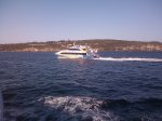 Since the advent of the Fast Ferry, the presence of security guards on the BotF has been non existent. Unfortunately, this changed on the 5.30pm this evening. A beautiful evening was being had – Friday and fine weather – what more could one want. The guard came around 5 minutes into the journey, looked at us crestfallenly and said “Please – no drinking”. We begrudgingly capped our beverages and waited for her to move on. What she did next surprised us. Instead of going back inside she hid around the corner of the back (see photo) called base and made copious notes. She eventually moved.