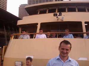 An unusual arvo on the Ferry as the Ferry was back to front. The BotF boys took it in stride and we became FotF quite quicky.  It was still BotF but we were at the stern facing into the breeze, because of the back to front nature.