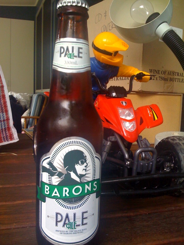 The brave boys at Barons, the same lads who import “Lucky Beer”, are at their best when producing a local drop. Their Pale Ale is a great whip with a nice little malty ‘bite’. Their website rabbits on about guava and blackberry or some such tripe but our correspondent did not detect such flavours. Seems to be constantly on special at my local, Brookvale Cellars.