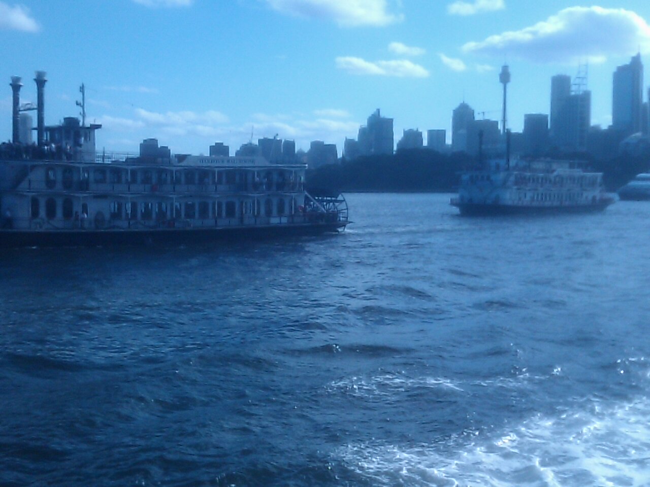 Two foundation members caught the ferry home today, and noticed the surfeit of riverboats on the harbour. Now a surfeit, when it comes to faux Mississipi riverboats on Sydney Harbour it is a number greater than zero (as per the photo). A BotFer remarked that we had riverboats on the Murray River once, but now they’d be 10 metres above the waterline and probably sit above a servo/roadside diner akin to the Big Merino at Goulbourn. I look at a Riverboat and hope that Paul Robeson will regale me with Moon River, or there’ll be blokes piling over the side as mel Gibson and Jim Garner brawl in a remake of Maverick – but that just won’t happen on Sydney Harbour.