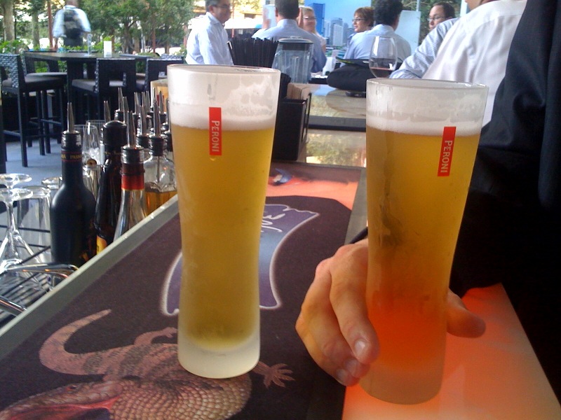 BotF wanted a quick libation before the journey home. We were promised two for one. Two thimbles of admittedly well presented beer – but still two thimbles were presented. Now $17 for two beers is steep in anyone’s language, even if you are a hedge fund manager. We were on our own coin – it is too much. Peroni is a good drop, but being reamed as you drink is unacceptable.