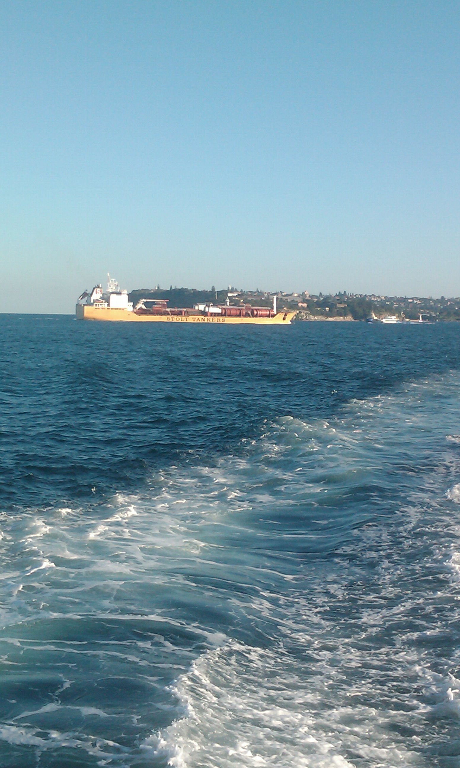 Lastly, the boys got caught a little short when the ferry stopped short because a passenger had to be carried off a ferry at the wharf. We’d finished our beers on time, but then got stuck 200m off the wharf. Still, there are worse places one could have been. No doubt there’ll be a 3 page colour supplement on the medical emergency in tomorrow’s Manly Daily. Not that we care greatly, the Fast Ferry also had dramas as it practically went out the Heads to dodge a tug boat, a pilot boat and an impressive tanker.