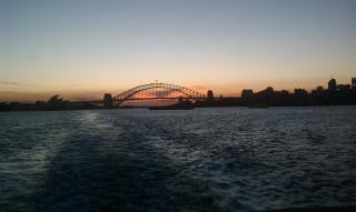 Autumnal ferry trips can be magnificent, particularly when the weather is like it was tonight. Almost balmy, with a firey sunset illuminating the Harbour Bridge and the city skyline. It’s relatively early in the week, so the boys had the BotF to themselves.