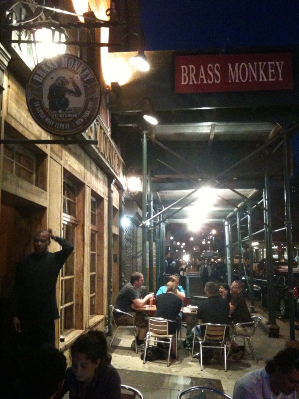 Mrs botf and I headed to the West Village to join all the pretty young things. We planned to review The Biergarten. The place to go apparently and much like our Bavarian Beer Cafs. But there was a queue and being Australian I refuse to queue where I have a choice. Luckily the Brass Monkey was two doors down and doing a thriving trade with like-minded patrons from the Biergarten. I was the only one not asked for ID. I like to think it was the accent and not the grey hairs. A fantastic range of beers on tap. I tried the Brass Monkey Ale and a Chimay. Both excellent with the Chimay a standout as usual. Been in US 5 days now and getting comfortable with the tipping. It really does mean “to insure prompt service” (thx Gerald). I tipped after the first order, probably a bit much, so on my second visit to the bar I was served prior to a row of waiting patrons in front and by two staff. This Aussie maybe handed over a 10 rather than a 1 previously!