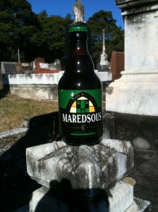 After a number of quite disappointing bevvies, BotF was delighted to try a really, really good beer from Belgium. Abbey beers fail to disappoint this correspondent and Maredsous 6 is no exception. Very aromatic and cloudy upon pouring, it is not as meaty as some of the strong Belgian ales – but gees it’s good. Very bubbly upon pouring (see photo), it retains a fine bead of bubbles for a long time, which is terrific as this is not a sculling beer. It isn’t as full in the mouth as a really strong Chimay but provides a long lasting pleasant bitter after-taste. Definitely a good post prandial libation or with cheese.