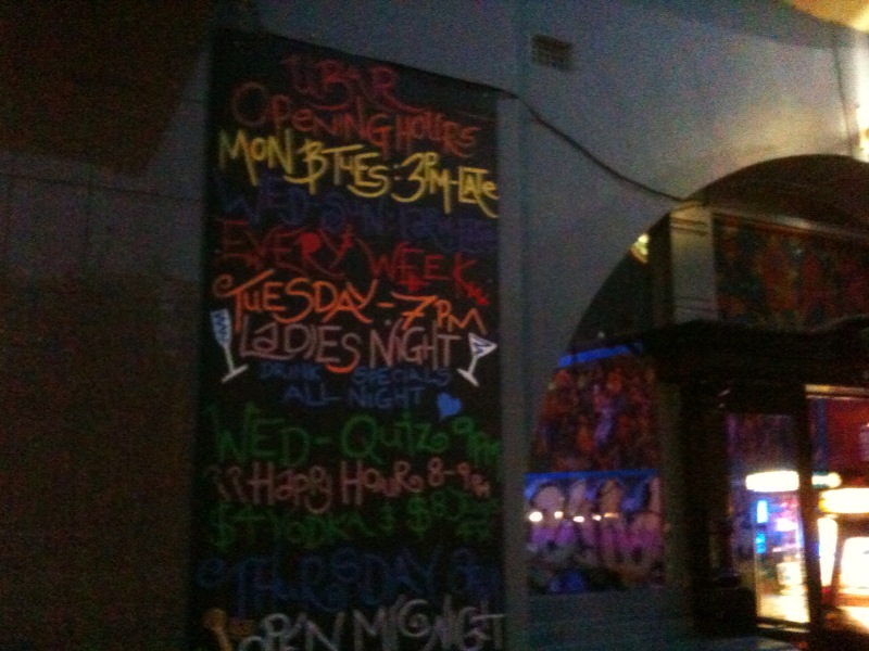 The Ubar is actually thecnr of Spencer and Flinders, (King St runs parallel to Flinders). You must have gone there on a quiet night. This place is a backpackers and is not very often quiet, in fact I am surprised you were able to unstick your shoes fromthe floor. The reason for the plastic glasses is because on most nights this place makes the Coogee Bay look like a Salvation Army Hall.