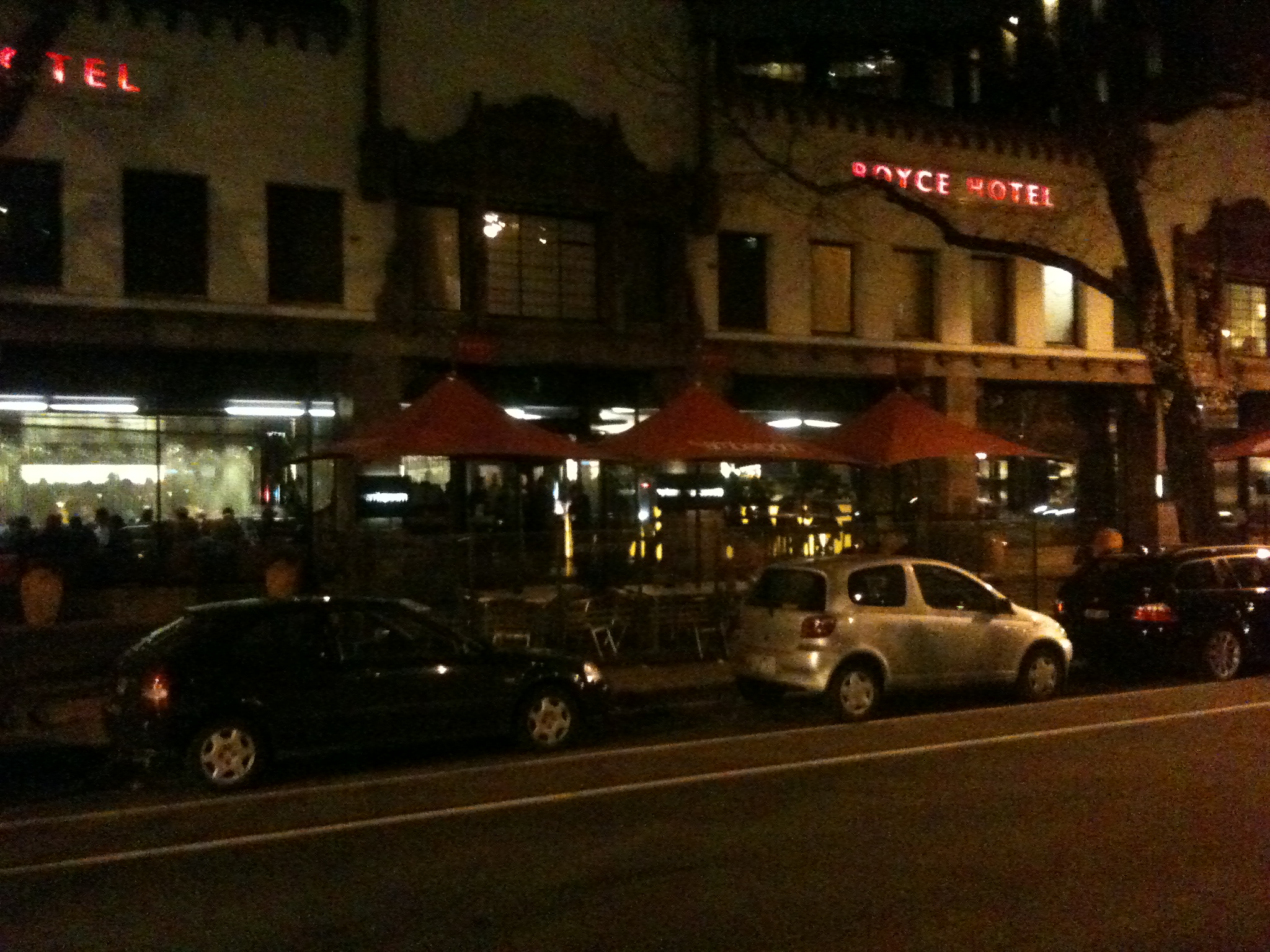 The clientele at the Amberoom are hard to pick. Probably mostly corporates on overnighters but, interestingly, the St. Kilda Rd Police Centre is across the road. This place has TV crews parked permanently outside and I can remember as a kid watching the news and always seeing rows of VIC police holdens out the front and some overweight moustachiod detective in an appalling suit being interviewed. Times have changed and Underbelly has lead us all to believe that detectives all wear Gucci and Armani. Maybe I was surrounded by Victoria’s finest as I punched out a few Fat Yak’s last week…….