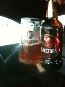 We turned our attention to the Bateman’s Victory Ale. This is a 6% bevvy brewed to commemorate the 200th anniversary of Nelson’s win at the Battle of Trafalgar (any excuse for a brewer). Now, Batemans is a brewer and pub owner founded in 1874. It is well regarded for its beer, and this looked promising with a very cloudy appearance with a very fruity aroma. The first mouthful was quite overwhelming. Very complex and plenty going on. In fact, there was too much going on and it was quite possible we’d found a beer that was a little too rich. We were kind of happy we only had one on board, because it was pretty tough going. Maybe being cramped up in golf convertible weren’t the ideal drinking conditions, but for mine, the clear winner was the Courage Directors.