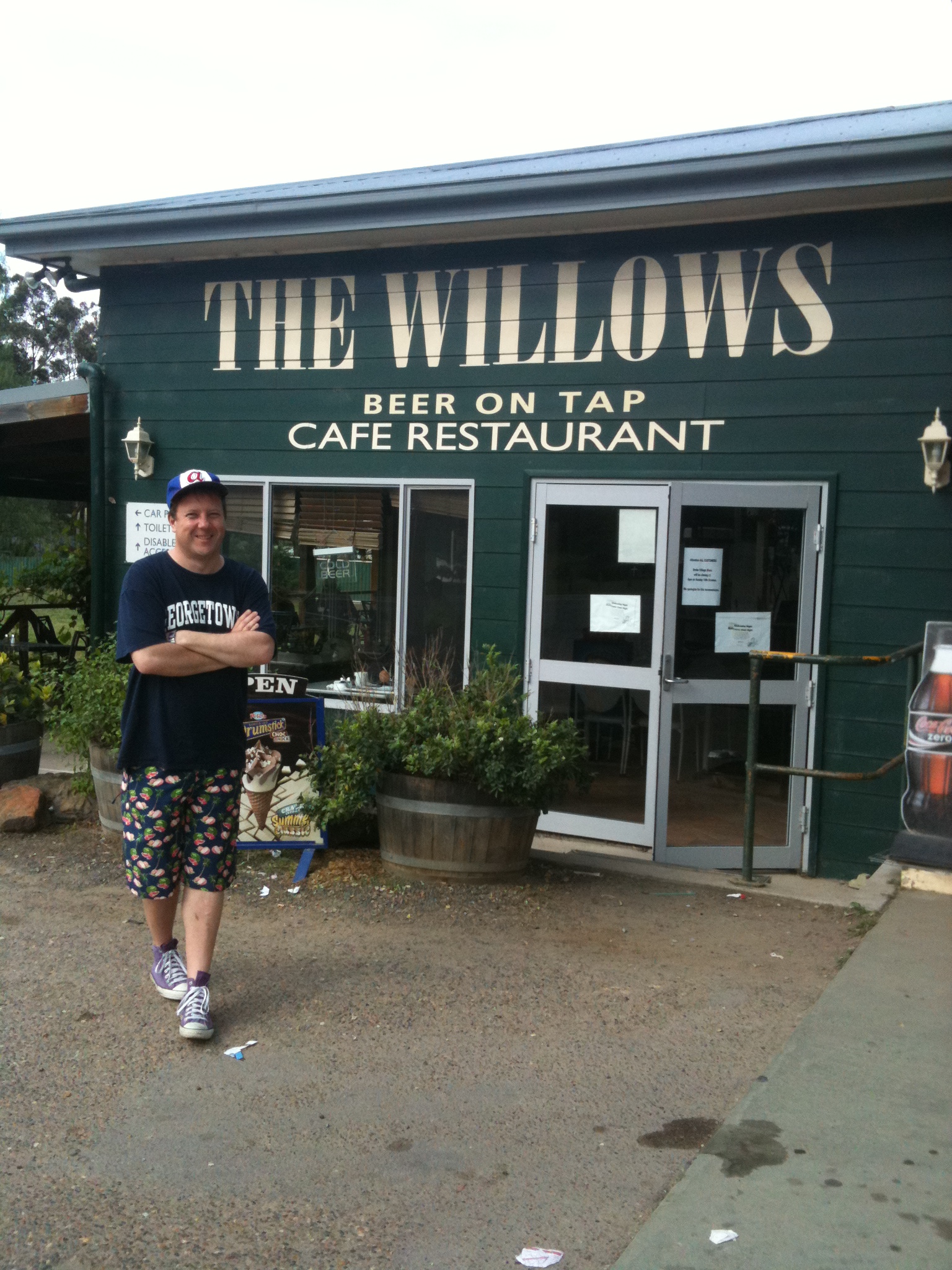 But all snobbery aside, this is a fine place for a beer. I’ve avoided the wineries this trip despite Cyril’s recommendations and have stuck religiously to the amber drop. $18 for 4 ice-cold schooners of Tooheys served with a lashing of dry wit makes the Willows a decent venue for a couple of pre-dinner prandials.