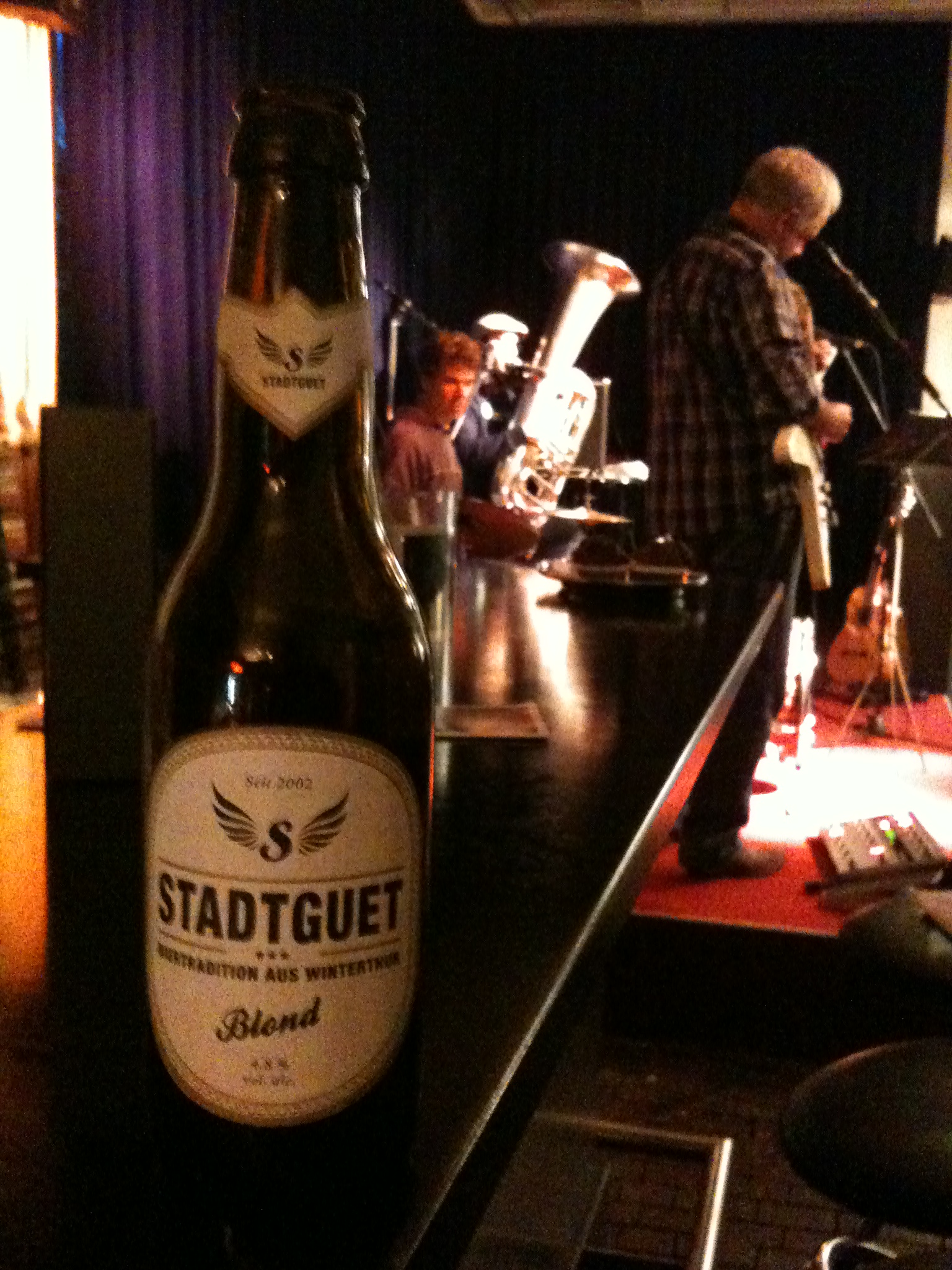 Winterthur, Switzerland is located about 20 minutes by train from Zurich. It is a sleepy little town that has a population of approx. 100,000 and has quite an interesting banking/insurance history. The Union Bank of Switzerland was originally founded in Winterthur 1862 which went on to become UBS AG which was also founded in Winterthur in 1998. Winterthur Insurance was Switzerland’s largest insurer until it was acquired by the French AXA Group in 2007. It is also a well known textile city which had its heyday in the early 1900’s but the industry has largely dispersed into Asia today. Now onto much more important demographics Winterthur has its own brewery Stadtguet founded in 2002. The website http://www.stadtguet.ch/default.htm unfortunately is all in Swiss German but the signature ale and one sampled by BoTF was Stadtguet “Blonde”. To be honest despite sampling this ale in a fantastic little Jazz Bar and ideal surroundings it was a bit of a letdown and not typical of some of the other malty Swiss or German beers BoTF has sampled. None the less it was a pretty good to spend a Sunday afternoon.