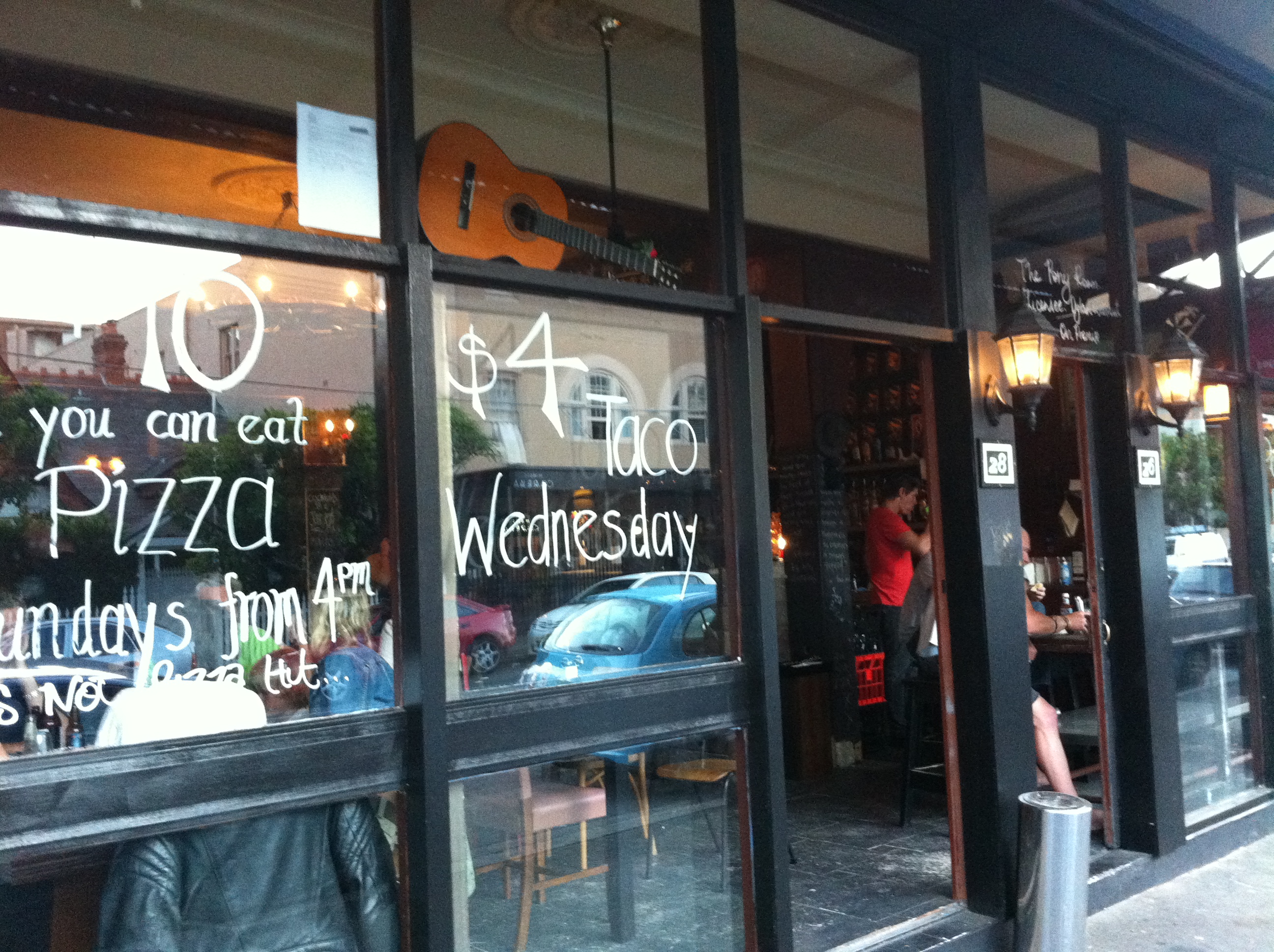 We were able to reacquaint ourselves with the Pony Room, which is a relatively new bar in Manly, for a couple of pre show libations and victuals. The Pony Room prides itself on minimalism with style – whether it is the drinks menu on a wine bottle or a Wednesday taco special (4 varieties). The retro feel of couches and school desks is complemented weirdly by nooks and crannies with wallpaper made of sheet music. Very hard to describe, so get down yourself one evening or afternoon and get into it.