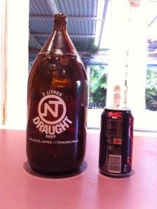 From what BotF can determine NT Draught, which now can only be found in a 2 litre Darwin Stubby, was once brewed in Darwin. It has always been brewed by Carlton & United Breweries and continues to be so, but now as a gift or souvenir beer. With a continuation of Friday ferry festivities at Cantina, BotF thought it appropriate to knock off the Darwin Stubby.