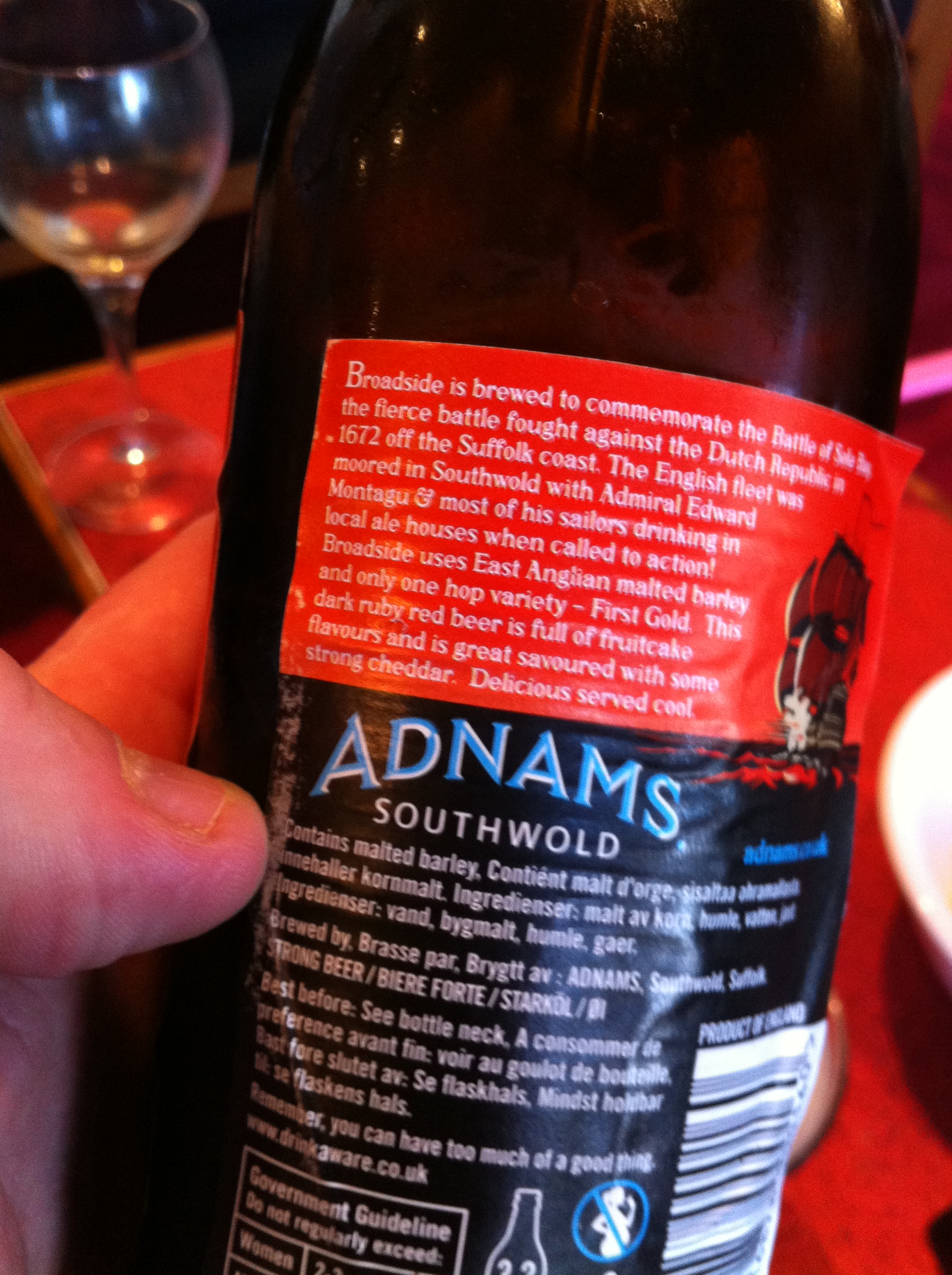The beer commemorates a famous sea battle that was held in 1672 off the coast of Southwold. The Battle of Solebay was between the Dutch and the Poms/French. Apparently an exciting draw, with two further fixtures played – the next one being nearer Holland.