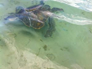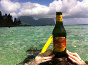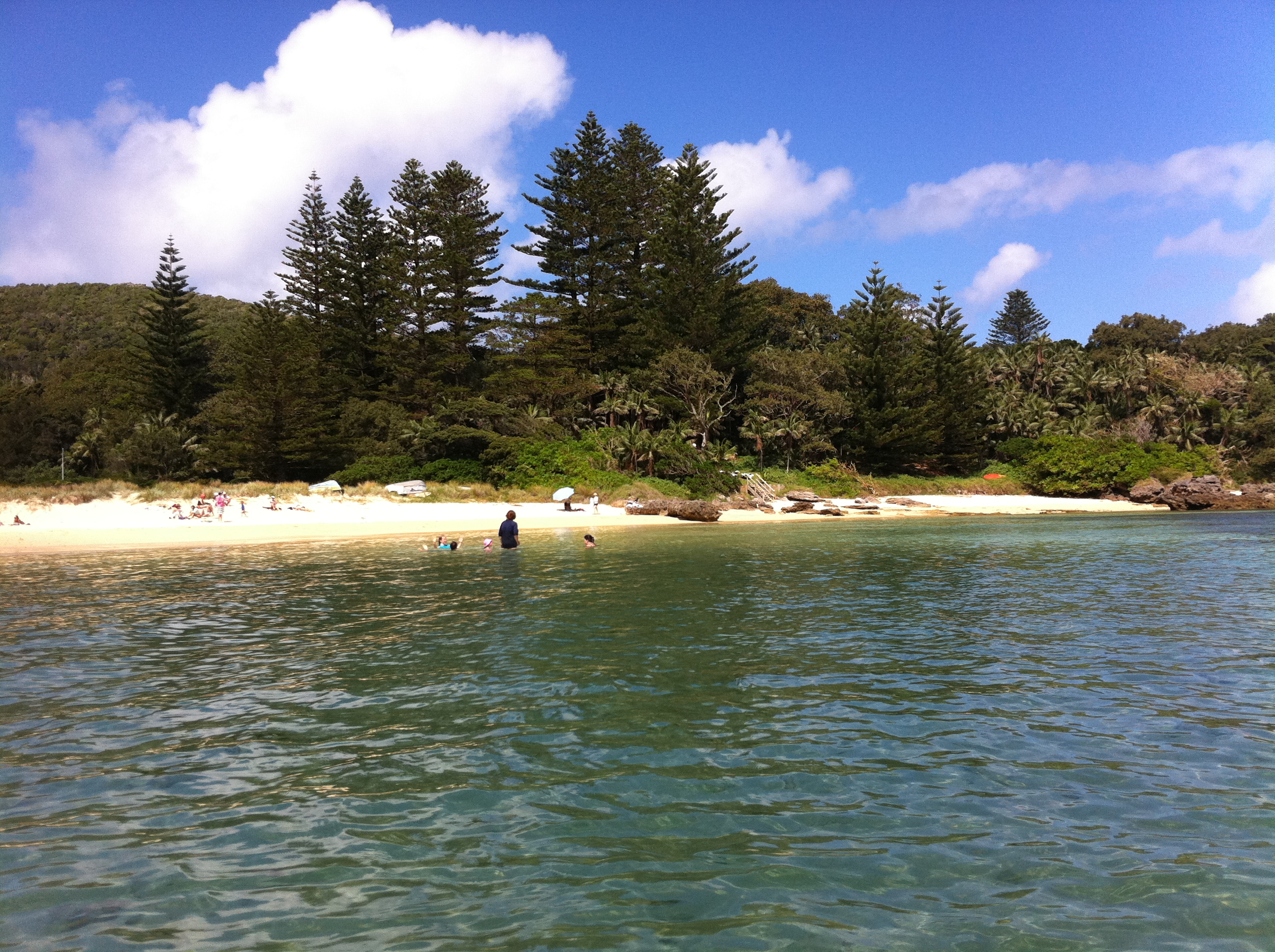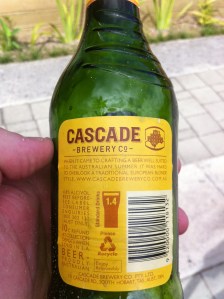 I drank it on Old Settlement Beach, which is a great place to be with or without a beer. This beach is so picturesque. No buildings can be seen on the beach, only a dune, some fields and then forest. A sanctuary is up one end, where a wonderful reef containing (when we went) sting rays, wrasse, double heads, clownfish etc can be found. The end where the kids go as safely as anywhere is famous for its frequent visits of turtles. Every time we went we saw at least one turtle, and you swim along side them. Phenomenal. My photo-assistant daughter tried to capture a photo of the Cascade with a turtle, but was unsuccessful.