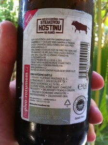 Next up was one of the purchases from the Brunswick bottlo – a 500ml bottle of Gambrinus Svetly. Everything augured well – 500ml, Czech and brewed by the boys that make Pilsner Urquell – but I think this was unfortunately the first bad Czech beer I’ve ever had. Gambrinus Svetly is a pivo vycepni svelte or literally a beer, tap, pale. I found virtually tasteless and the aftertaste was quite watery and short. 3 mouthfuls in and I was offering it to my companions for their verdict, hoping someone would like it. No-one was overwhelmed. Gambrinus sponsors the Czech equivalent of the EPL. The only positive for this beer was an intriguing bottle-top of a bull that has no apparent connection to the beer. Possibly a promotion, but my Czech is as good as this beer.