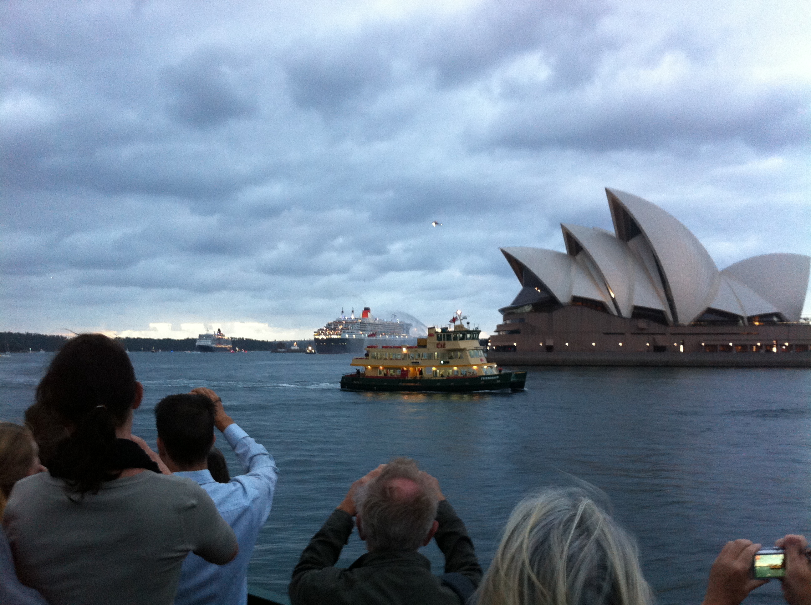 There’ll be a more detailed description this evening, including the obligatory beer review. Three hardy BotF members braved a stiff southerly on the FotF to witness the Sydney Harbour rendezvous of the Queen Mary 2 and the Queen Elizabeth at 6.30am. A special beer was cracked to toast the Queens, much to the amusement of the boatspotters that crammed the upstairs veranda bar.
