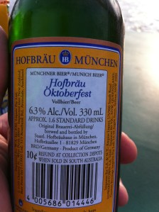 Today’s obligatory beer review comes from Germany. If you’ve ever been to Oktoberfest in Germany, then chances are you’ve been to the Hofbrau tent. It’s the second biggest, and every second backpacker has probably knocked off one of their steins. According to their website, they’ve brewed Hofbrau Oktoberfest to celebrate Oktoberfest. Interesting choice of alcohol content, because a couple of Steins of this and you’d be face deep in sawdust. That’s not conducive to spending hundreds of Euros over a day, if you are slaughtered after two. When pommy_ch and bladdamasta shared a 6 pack of this on the BotF, we felt like we’d spent an afternoon in an outdoor beerhall.