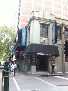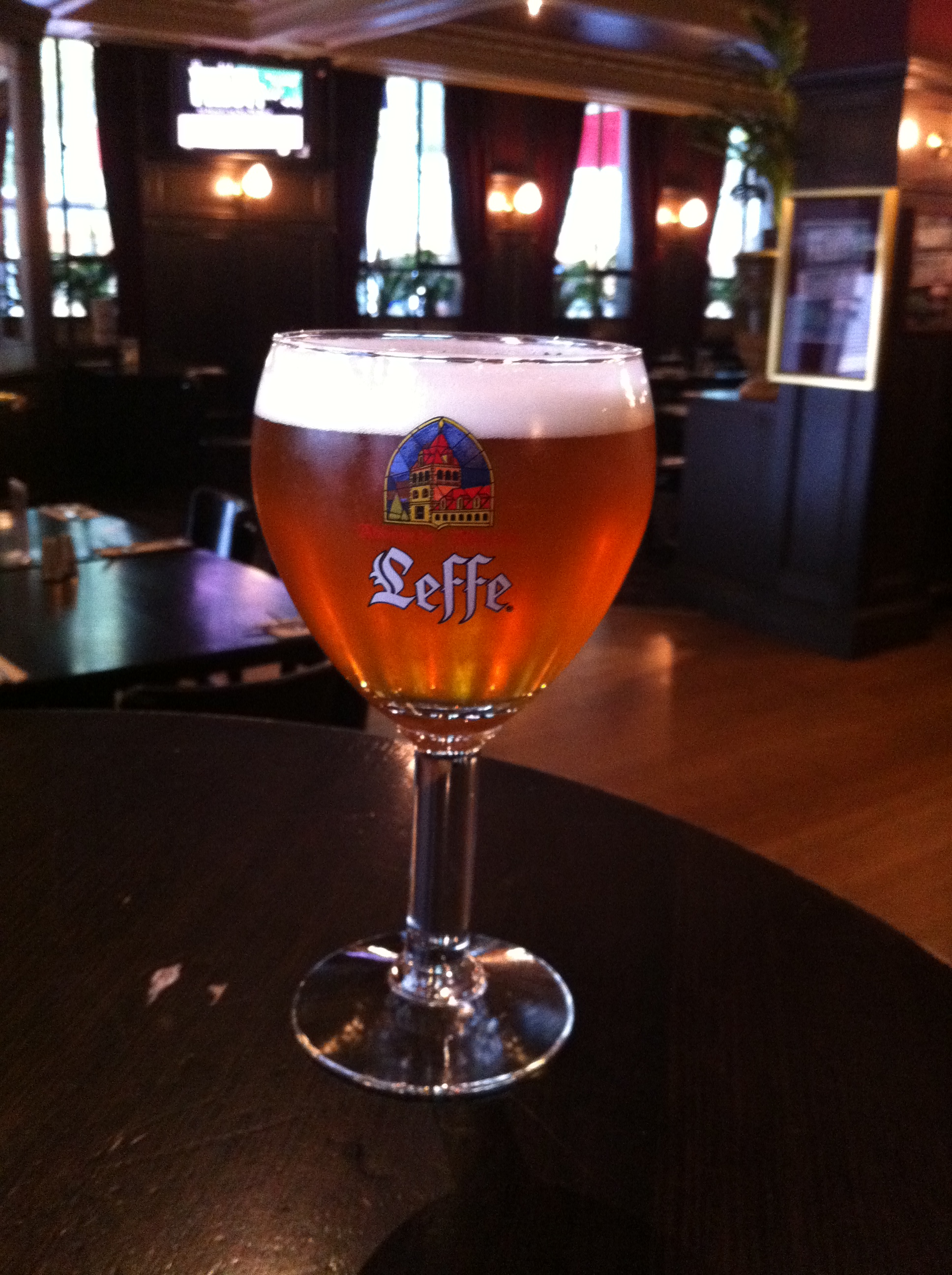 Exploiting a small window of opportunity after another flying visit to Melbourne, BotF sprinted through a couple of bars in Exhibition Street, which comes off the Paris end of Collins Street. I’ve got to say, though, that I was stopped dead in my tracks by my first beer. The European Bier Cafe is a very classily done up bar on the corner of Little Collins and Exhibition Streets. Plenty of dark wood panelling, booths and 3 6-tap-racks mainly of European beers provide a fine drinking establishment. They don’t miss you on price, however. Had a quick yack to the barman, and he advised that despite a 16 to 2 ratio on Euro to Cartlon Draught on tap – the punters drink Carlton Draught 2 to 1. Maybe its the price. I chose the Leffe Blond – f&ck me. This is just a sensational beer. The Leffe glass ensures that your nose is assaulted immediately with all sorts of aromas. The first sip is also overwhelming and you wonder where you left your knife and fork. I started to hope that my plane would be delayed, as I wanted to sip this fruity complex strong beer. The website lists an amazing history of the Leffe Abbey that is well worth a read.