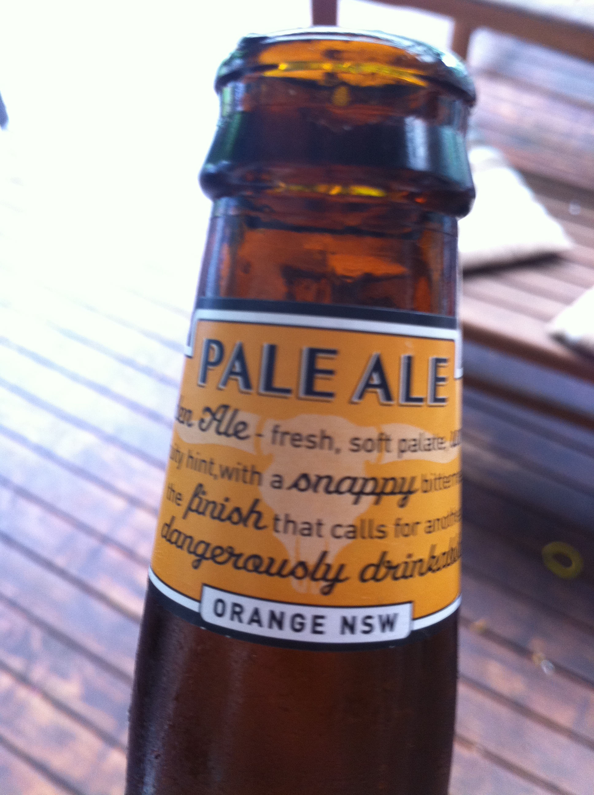 Another visit to Porters Balgowlah is rewarded with another untried beer – Pale Ale from Badlands Brewery. This well presented beer is the first of many promised by a young brewery that has been founded in Orange in Central West New South Wales. According to the website, Jon Shiner is a home brewer that is living the ulitmate dream and opening a brewery and a bar. Still to come is a Porter, an IPA and a Mild. For a first up effort, it is not bad. Beer label hyperbole promises “snappy bitterness”, and there is definite bite, but it isn’t as long lasting as some other pale ales I’ve had recently. Drinkable, but not “dangerously” so.