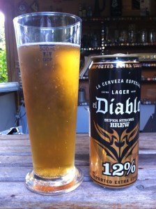 J’s inspiration was the fasting methods of the Paulaner Monks at Cloister Neudeck ob der Au in Munich, that adopted the beer fasting method. If they’d had the beer I found down the back of a bottlo on Pittwater Rd, I don’t know how prayerful they’d have been feeling. There was one tin of a gold and black super Strong brew that I’d never seen before. I cannot find a photo of it on the net, and by piecing together some links I think this is brewed by the Bali Hai brewery out of Indonesia. The scary 4.8.standard drinks logo says “Under Licence”, but for whom? Anyway – it’s surprisingly sessionable – for the first 200mls – then things start to blur. Very strong – but bland, not Belgian. The scent is ethanol and eyewatering.