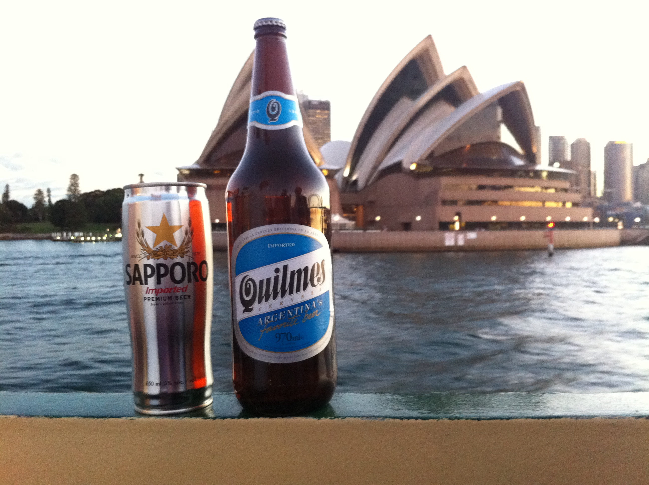 TfT picked up a couple of exotics from a Manly bottlo and was most distressed to find that both drops had been blogged about before. Still, the presence of big cans on the BotF brings out the Benny Hill humour and plenty of sniggering ensued. Sapporo is a fine drop. This correspondent had the task of draining a 970ml long neck of Quilmes. The original review was unfavourable and nothing has improved about the Argentinian Fosters. It is close to undrinkable and by the time I reached the last 300ml, it was warming up and becoming even worse. The best thing about it was the photo we got.