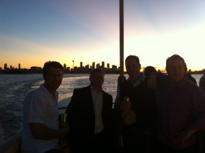 We’ve been fortunate to be able to entertain our Beijing based correspondent Tony from Toowoomba on two successive nights on the BotF. Sydney must be happy about that, because she has turned on some of the best April weather I can remember. Last night in particular was simply spectacular. Clear blue sky with a couple of wisps of cloud and balmy summer like atmosphere. A couple of us had jackets, which simply weren’t required. It isn’t often that TfT makes it to Sydney, so the BackoftheFerry boys turned out en masse.