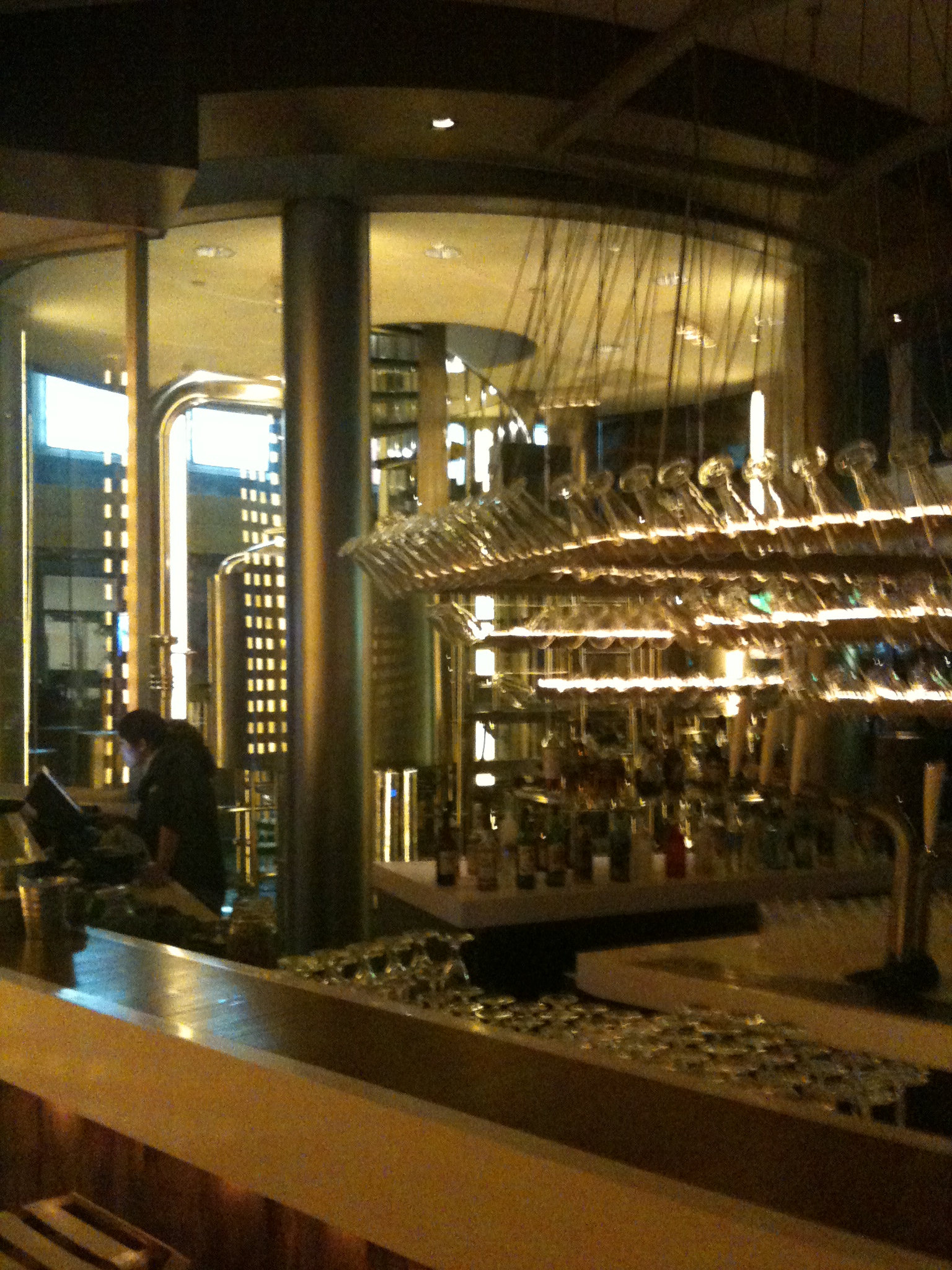 At the risk over being accused of being culturally imbalanced BotF re-visited as promised “The BREW” at the Kerry Hotel in Shanghai. I am also informed that another BotF member will be visiting Shanghai shortly so it is imperative to communicate the details of what is a fantastic and possibly the best microbrewery in Shanghai. The location of this lounge is very clever just to the left of the main reception area in front of the lift lobby. The choice is hard to any self-respecting purveyor either go to your room or sample the offing. Whilst in the full throws of explaining the uniqueness of this place to my Zhongguo Pengyou I was interrupted by the Brew Master Leon who introduced himself then offered a full blown inspection of these fantastic facilities and was delighted to hear that the “The Brew” had already graced the pages of BotF. Unfortunately time limited the tour. This is a “must visit” in Shanghai and the hotel itself is quite conveniently located to the city near Century Park.