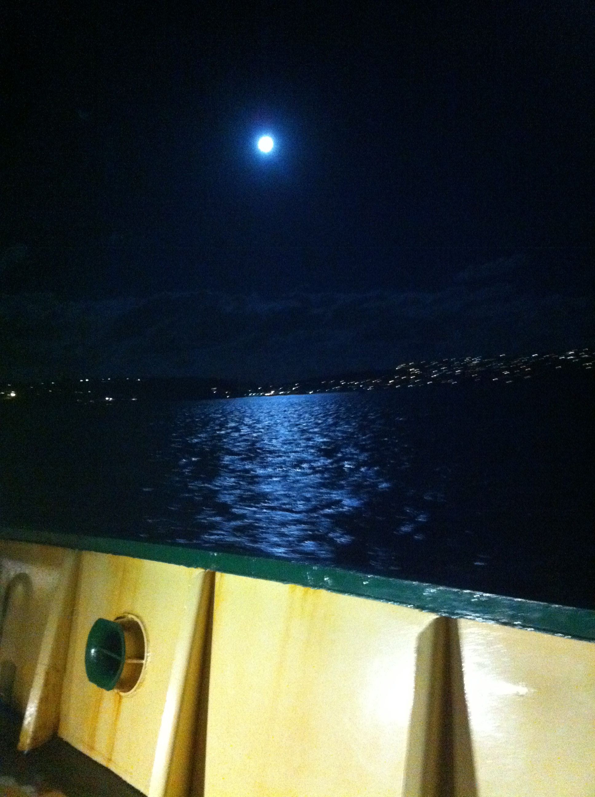 As we charge headlong towards the winter solstice, there is almost more sign of the sun in the air when the 6pm from Circular Quay sets sail. It’s pretty cool on the back deck and big beers are the order of the day. The sky has been clear and we’ve had some great moonlit evenings recently.
