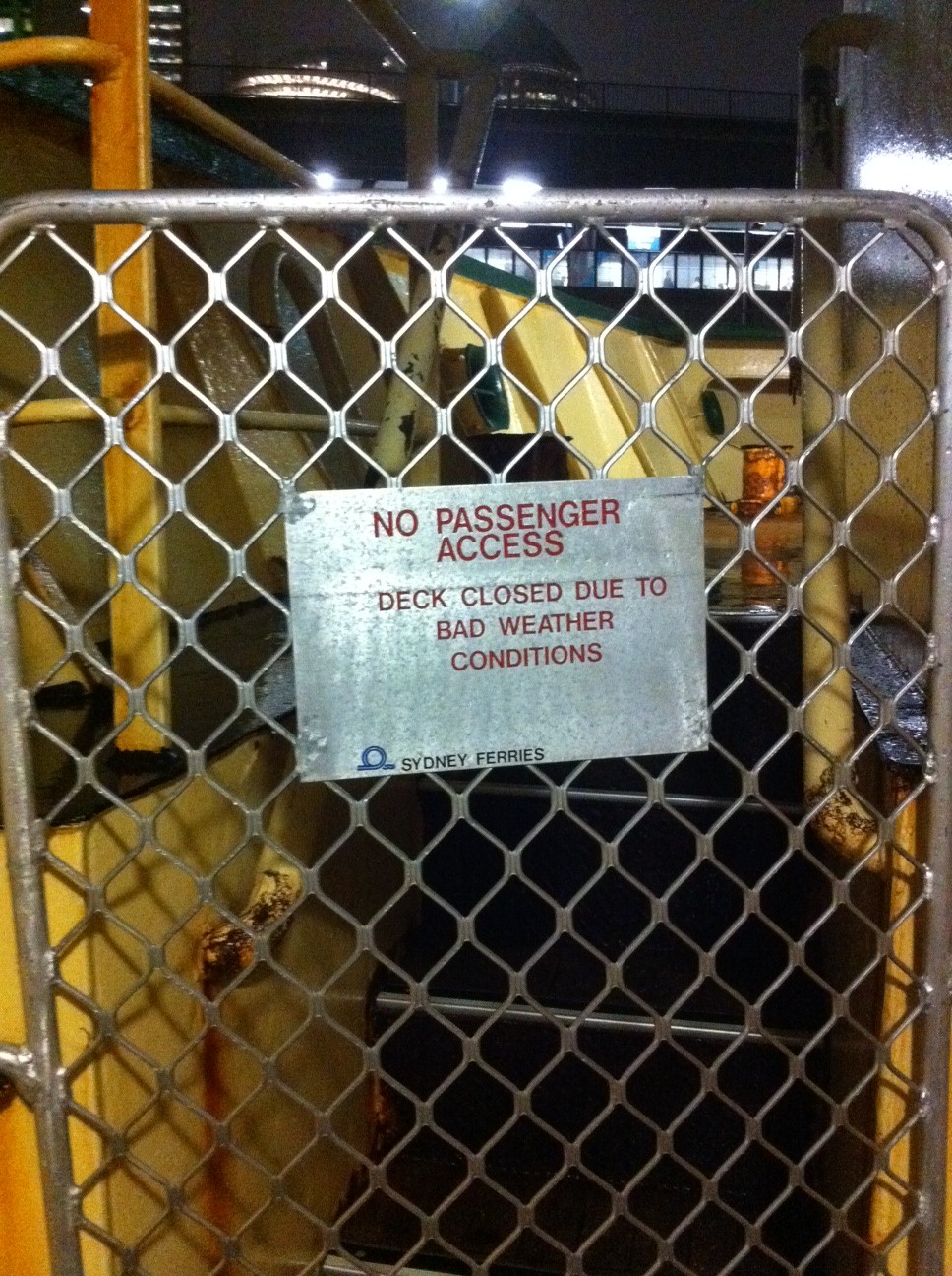 Last night was a well attended session on the ferry, but due to rough seas we were unable to assume the normal position on the BotF. Occasionally, when the swell is significant the gates are locked and we are relegated to the Side of the Ferry. We were on our lonesome as there was also a fair bit of rain about and there is minimal sheltering on the SotF. One less hardy soul gave it a couple of minutes before scuttling inside muttering something like “You”re fuc&ing mad”. We had two gentlemen from the United Kingdom is our midst, including the infrequent commentator, Punchy, and they were marvelling at the balminess of it all. Punchy’s actually threatening a review of Black Sheep Bitter – so we look forward to that.