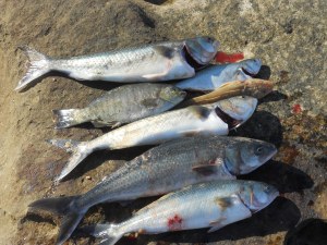 Down to the club for the weigh in at 3.30pm – turned out I came first (and last) in the rock and beach section. There was about 10 or so other members weighing in for the offshore section – a number of nice snapper, flathead and trevors (trevally) hit the scales. No one managed to catch a whiting. A BBQ, a few Bulmers rounded off the afternoon.