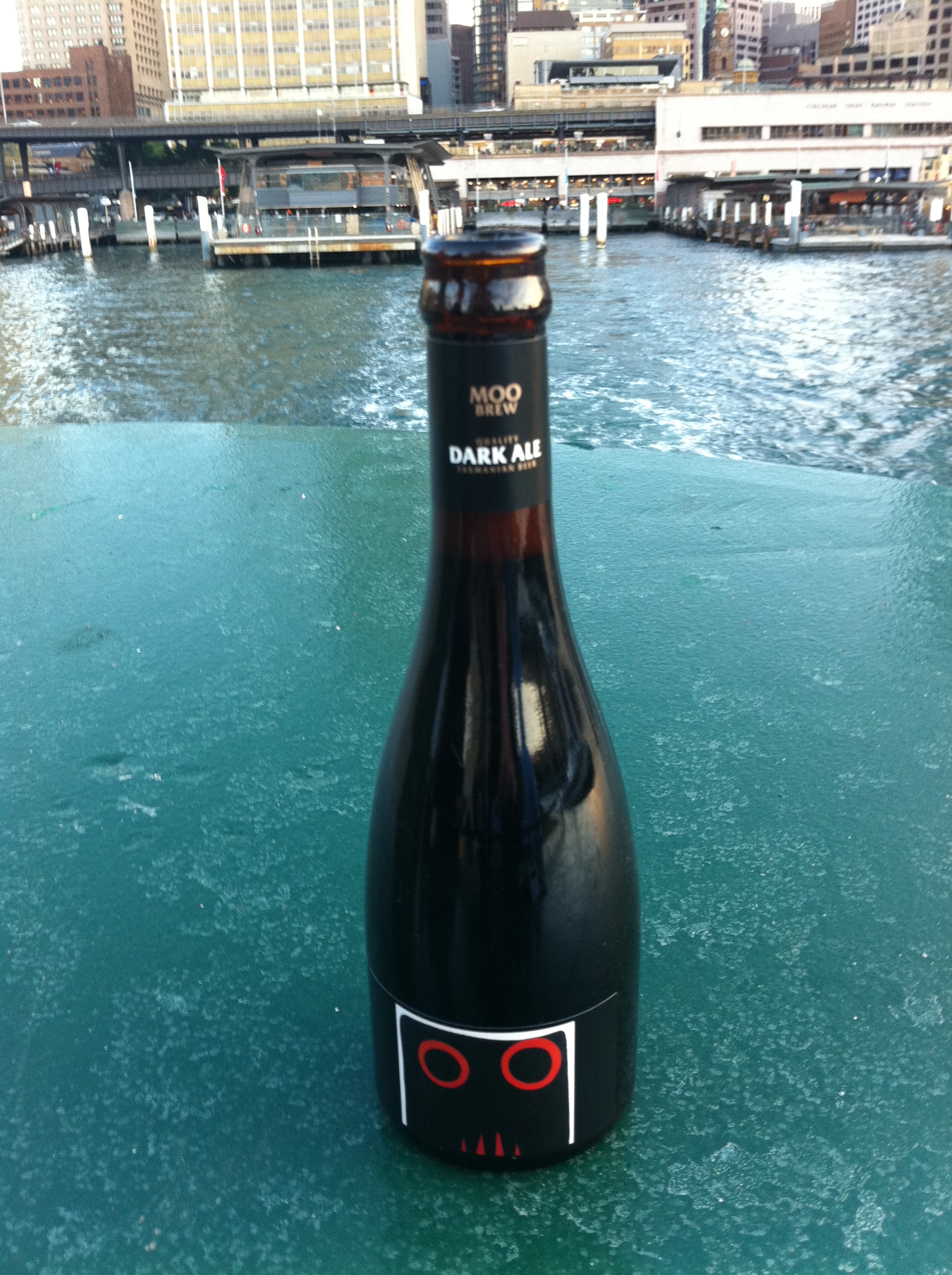 Our first beer has appeared on these pages before. The Australian Wine Centre in Goldfields House, Circular Quay is stocking some Aussie Craft Beer on its shelves and is a welcome alternative to Mr Liquor. They’ve currently got two varieties of Moo Brew available, and I opted for the Dark Ale. This is a chewy beer, and probably not one for a balmy evening, but rather a cold Tasmanian night. Still, nothing to sneeze at.