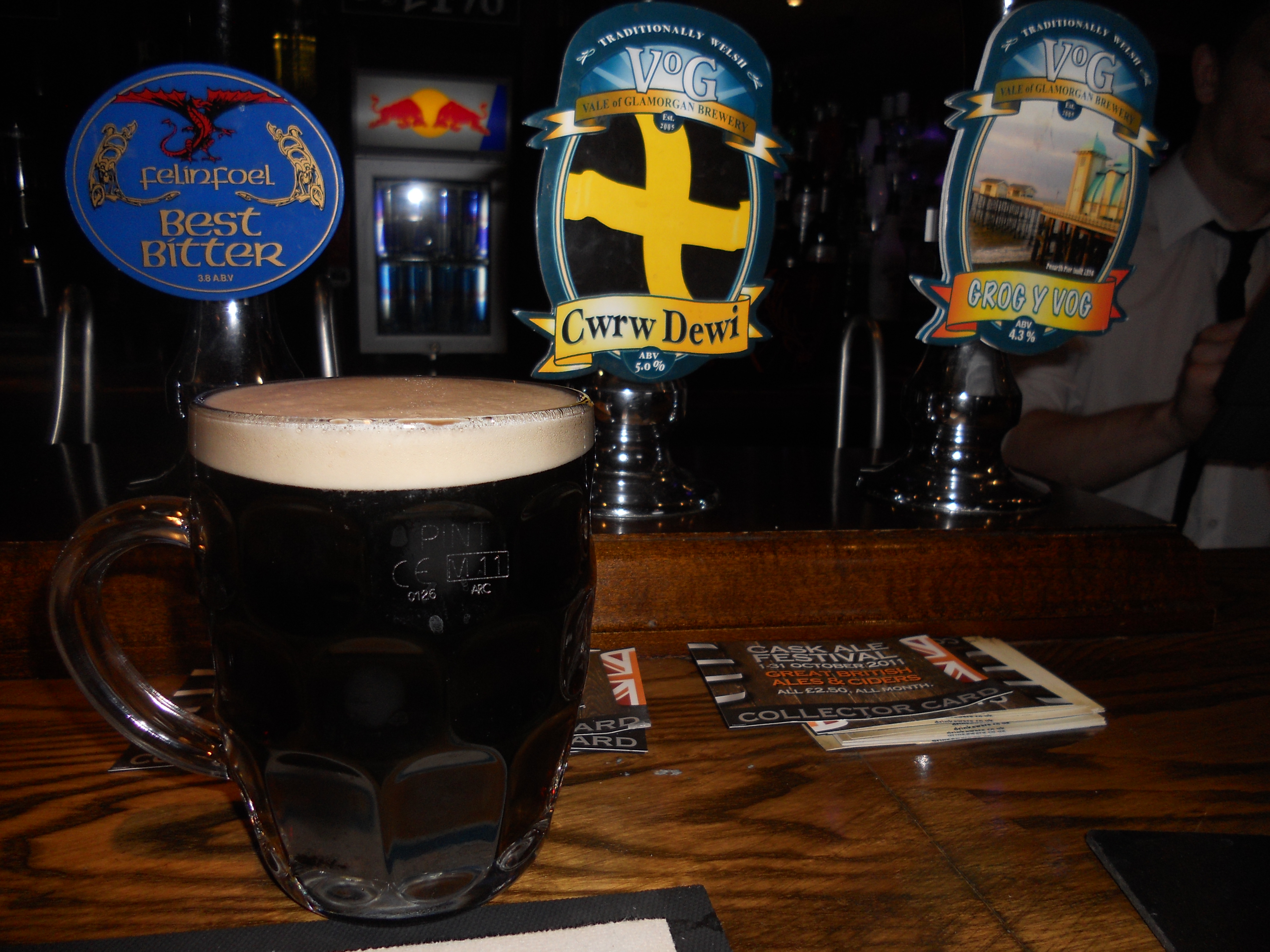 Back to the pub, a good variety of beers on tap, usual lagers, a few ciders and a number of cask ales. A good menu and the food was good. On the beer front, I went for a Welsh beer that the barman recommended, Cwrw Dewi. This beer is from Barry in Cardiff Bay, the Vale of Glamorgan. A very dark beer, has a bit of a malty tang and a bit of an edge. It was fairly potent at 5% and a couple was more than enough. Never seen this side of the Bridge, but would drink again. I also sampled it stable mate Grog Y Vog (a more of amber ale type). Don’t ask me how to pronounce.