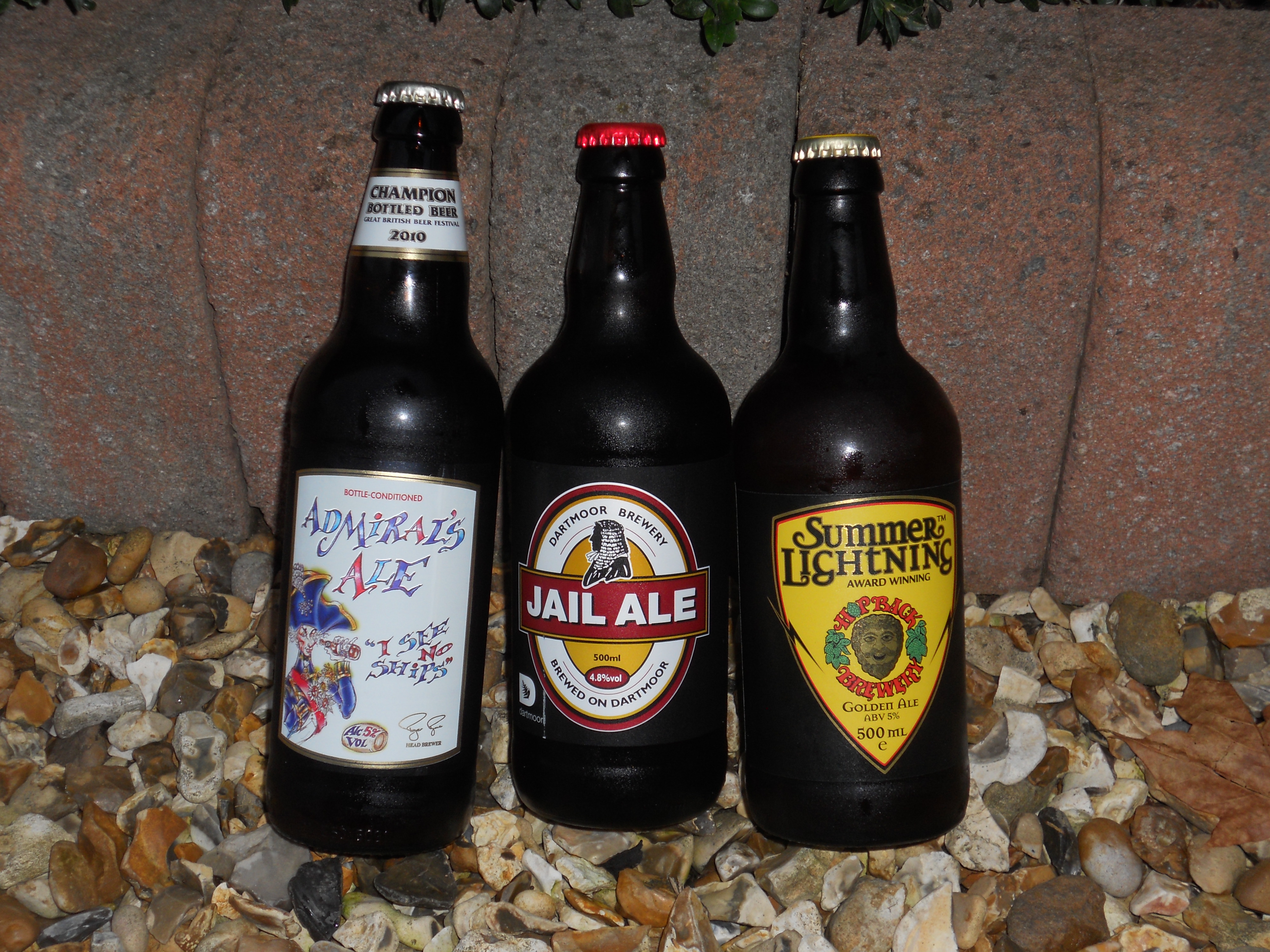 Down at Tesco’s they had an offer on of 3 real ale beers for 4 pounds, seems to be the way in tight austere times. So thought would go for a few from the West Country, picked out Jail Ale (Devon), Admiral’s Ale (Cornwall) and Summer Lightning (Hampshire). Note not all consumed in 1 sitting but over the last few days.
