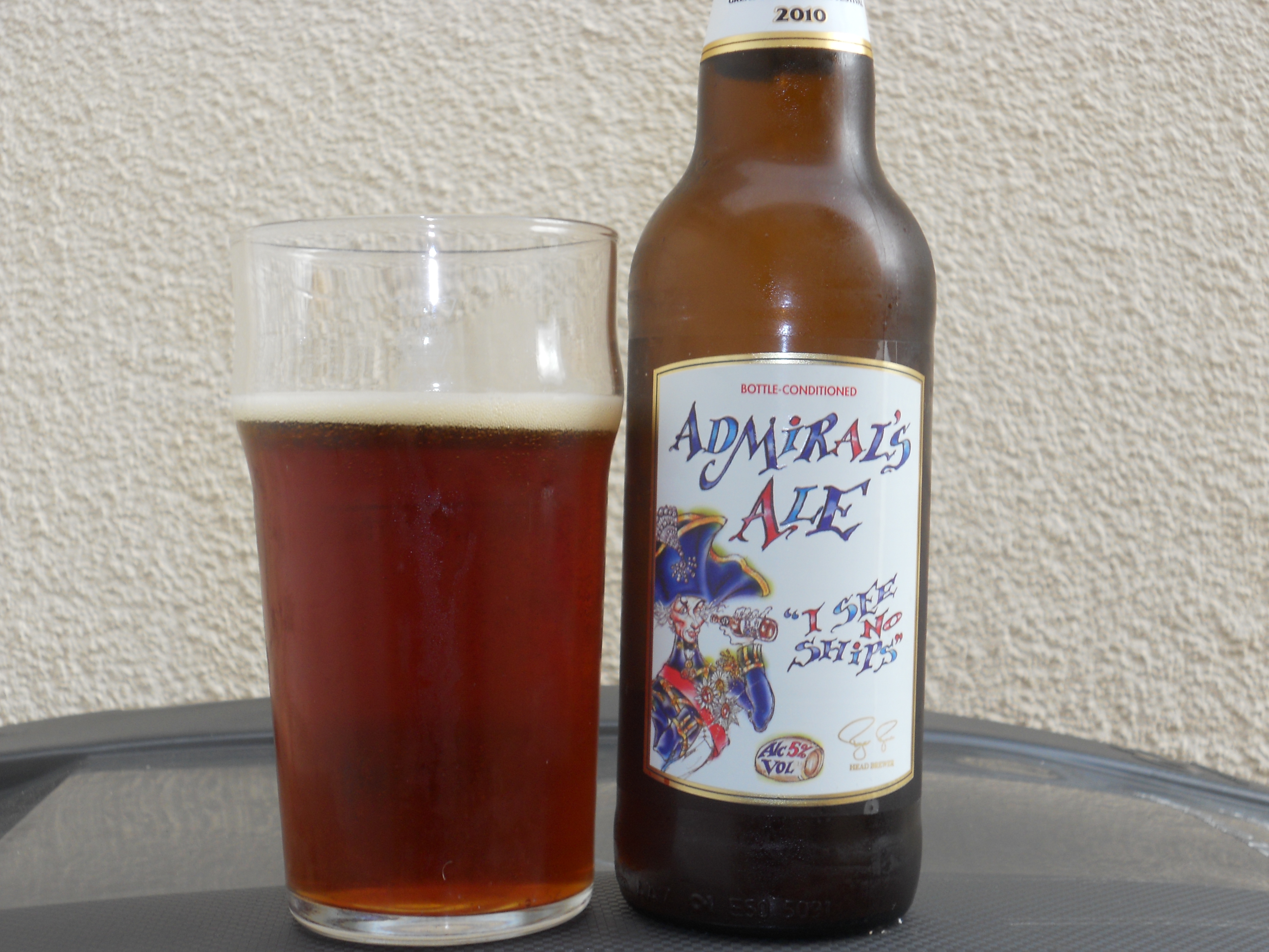 Last of the three, is the Admiral’s Ale from St. Austell, Cornwall. Back to a darker bronze beer, definitely more suited for warming you up on a cold winter day. This beer was is heavier strong roasted hop aroma and a strong bitter. Like the others has won many awards, again 5% strength . Amusing label, “I see no ships” and one to buy.