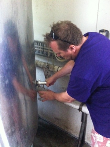 Ross, one of the founders, very kindly gave me a sample of the almost finished latest batch of Pacific Ale straight from the vat. It still had to be carbonated, so was flat, but that unmistakeable hoppy freshness shone through. That’s Ross in front of a whole bunch of cartons waiting to be filled with 24 stubbies of Byron Bay sunshine.