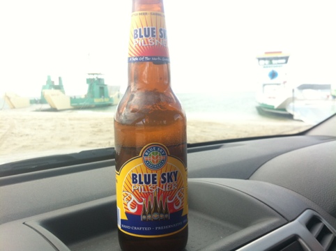 The campers come to enjoy the fishing, sailing, boating, jet skiing and swimming in the 26 degree waters. Within a short distance there’s surf and the bay waters of Tin Can Bay. As we watched the barges do their thing we sipped a Blue Sky Pilsner. This comes from Cairns which is from where Blue Sky Brewery is trying to become the Coopers of Far North Queensland. Operated by brothers, it, like Coopers, has a bar at the airport of its city. They’ve got a great range of beers and have won plenty of awards. Blue Sky beers are only available in Qld, but they’ve done well getting into Dr Dans and First Choice. I’ll give the Pilsner another try when it is cold.