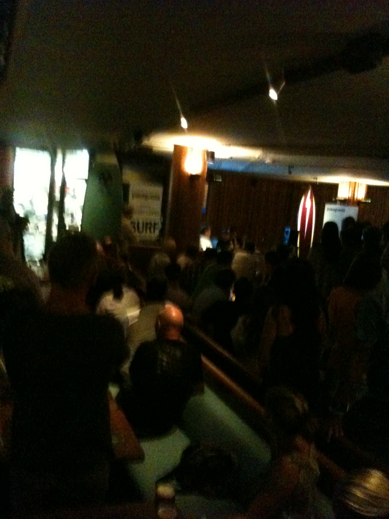 Gerry is now an ambassador for outdoor clothing company, Patagonia, who’ve just opened a branch in Manly and last Wednesday night he appeared at Murray’s at Manly to talk about a new book and generally reflect on his life. It was a ticket only event, and it was only on a last minute whim that I decided to rock in with a mate, knowing that half the bar was still open to the public. I certainly wasn’t the only one with the idea, and there were plenty more than the 100 that had tickets ready to hear Gerry. Gerry didn’t disappoint and delighted the crowd with a wonderfully mellow rambling about what it is like to surf, how it contrasts to snowboarding (his passion now) and his modest recollection of his abilities. Any chance of bagging a decent photo of Gerry Lopez was dashed by a thronging crowd, but it was a privilege to hear him talk.