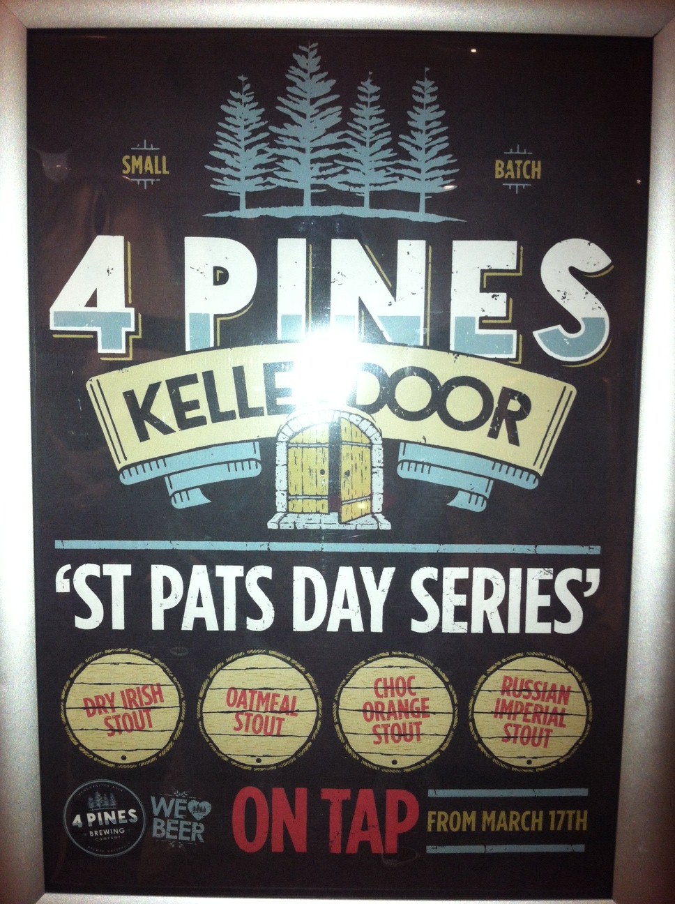 For their 2nd Keller Door Series, 4 Pines has developed 4 types of stout. A Dry Irish Stout, an Oatmeal Stout, a Russian Imperial Stout and a Chocolate Orange Stout make up the range. This time you don’t have to be in Manly to enjoy this release as 4 Pines have been able to get to bars in NSW, Victoria, Queensland and WA with some kegs. I was particularly keen to try the Chocolate Orange. My favourite confectionary item is the Jaffa – the uniquely Australian and New Zealand lolly. That said, I was hoping the stout wasn’t as sweet as that. I needn’t have worried. It’s beautiful looking – sleek and silky black. THere’s plenty of orange on the nose, but the orange flavour (not jaffa) is far less pronounced that the aroma would suggest. It’s subtle, distinctive and just really, really pleasant. illiards and I had a chat to Jaron the GM and he told us that during the planning for the Chocolate Orange the brewers sampled a few orange flavoured dark chocolates – and that’s what they aimed for. Mission accomplished. We also tried the Russian Imperial Stout, which was a real sipper. I might be taking my growler down this arvo to get a top-up. Very rich, quite alcoholic and really suited to an after dinner plate of cheese.