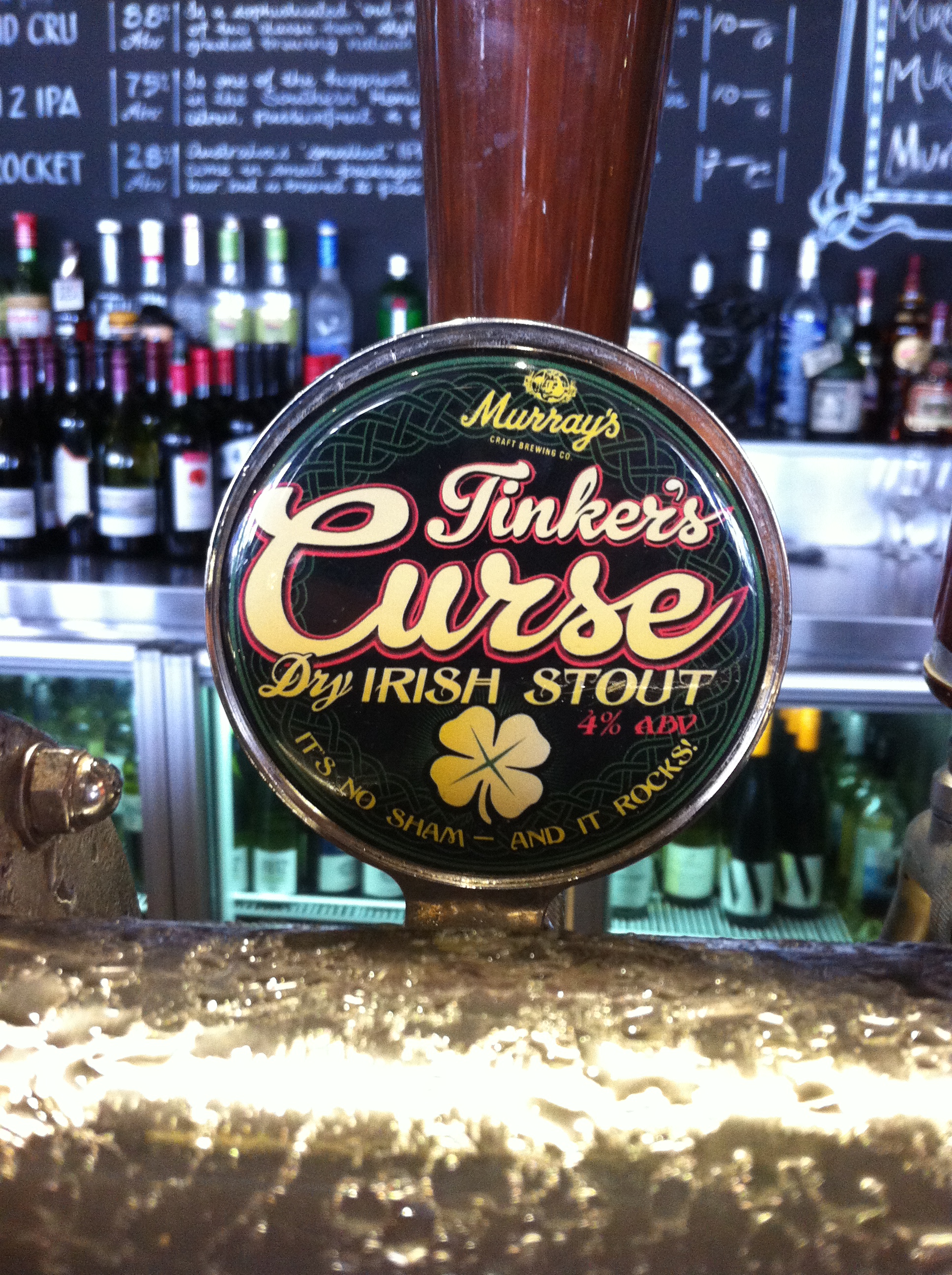 I’m sure that there was plenty of stout action around the world in the last 48 hours. On the insular peninsula of Sydney, there were 4 new stouts tapped over the weekend – and BotF was able to get there within hours of each of them hitting taste buds for the first time. We covered off two of them on Friday night (4 Pines Chocoalte Orange and Russian Imperial Stouts), but yesterday – the actual St. Patrick’s Day – saw us try the remaining two. The first was the beautifully presented Tinker’s Curse Dry Irish Stout from Murray’s Craft Brewing . The labelling and naming of all Murray’s beers is always first rate. “It’s no sham – and it rocks” could be corny, but isn’t. The beer itself was pretty solid also. Another example of a fine Murray’s beer that doesn’t have to have a high ABV to be good. Paper dry, longly bittered and well toasted – this is a fine sessionable stout. We also tried the third of the new 4 Pines Stouts – the Oatmeal Stout. Nothing wrong with this drop either. A coarse, old fashioned bevvy that poured thick black with a medium brown head – this was a perfect winter beer. The wind was up on the 4 Pines balcony and the stout blanket did the trick. No dud stouts this weekend.