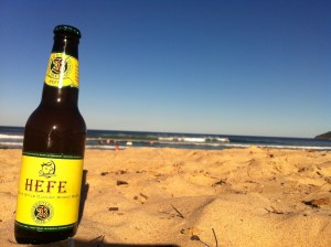 Before this blog was started, I would pretty much try anything in a bottleshop fridge or from a tap rack, but if it was a choice between a hefeweizen and something else – I’d have gone the something else. That’s changed now, and on a hot day – I’d go for a hefeweizen more times than not. Whether it’s the effervescence, the cloudiness, the wild aromas or the wheaty flavour, I’m not sure – but I’m a convert. Sydney turned on a rare hot Friday and I was able to duck down to the beach for a quick dip. I took a bottle of Bootleg Brewery Hefe for the post dip libation. Bootleg Brewery is a self-proclaimed “Oasis of a beer in a desert of wine” in WA’s Margaret River region. They’ve been going since 1994 and have a solid line-up of beers including one called “Raging Bull” that is well named. Hefe is a good example of a hefeweizen. It is not as agressive as some, and the aromas aren’t as pronounced – but it is a great thirst quencher. All the more reason to get to the West soon.