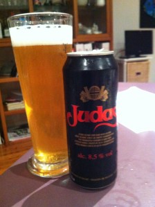 A better example of a super-strength beer is a tin of Judas. I picked this up for the reasonable $3.99 and wow – this was 500ml of Belgian splendour. It has that chunkiness of a Chimay, but not overwhelmingly so. There was a sweetness at the start, but it soon disappears and is replaced with a rich malty aftertaste. It is apparently a similar style to Duvel. Can’t find out why it’s called Judas and apparently doesn’t warrant its own website. Definitely worth a try – and a far more subtle super strength beer than the Kestrel.