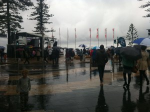 The travel brochures advertising Manly and its delights will always show beautifully clear days with rolling surf, smiling happy people and a general vibe of perfection. Fair enough – quite often Manly is just like that. I haven’t seen any promotional materials for the Manly Food & Wine Festival or the Manly Jazz Festival – events that are held annually – but both would be misleading if they contained a hint of sunshine. We’ve previously commented on the shocking meteorological luck of the Manly Jazz Festival. A similar fate befell the Manly Food & Wine Festival on the weekend.