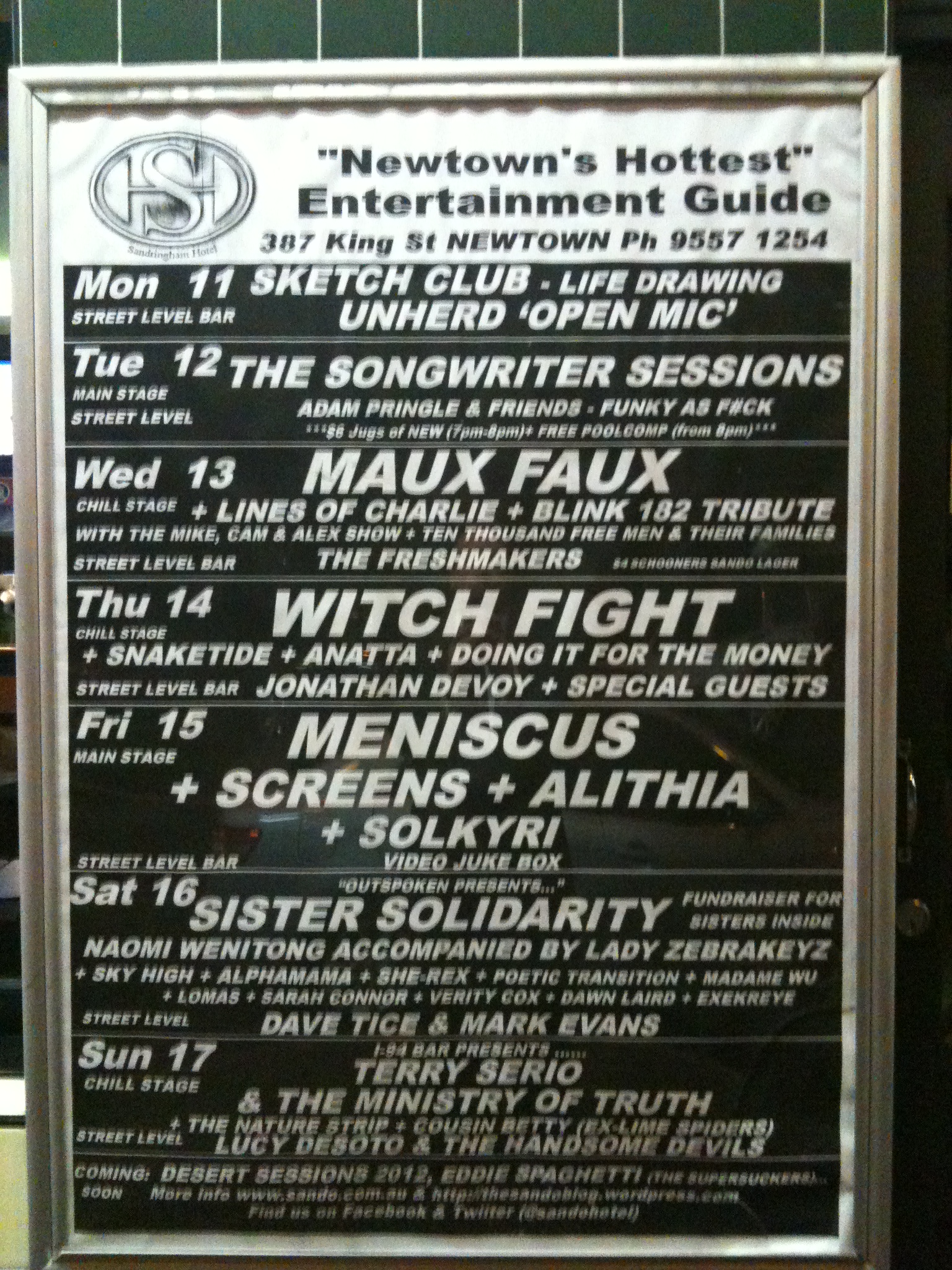 In Sydney, there’s not many places like the Sandringham that have entertainment options 7 days a week. It’s always been about the music at the Sando, and it’s been a place to play when you are starting out as a band. You can see from the photo that the outside is looking a little tired, but you could actually achieve that look in painting classes that dominated inner west house renovations in the ’90s. I reckon it looks fine, and it will be a much shorter gap between visits.