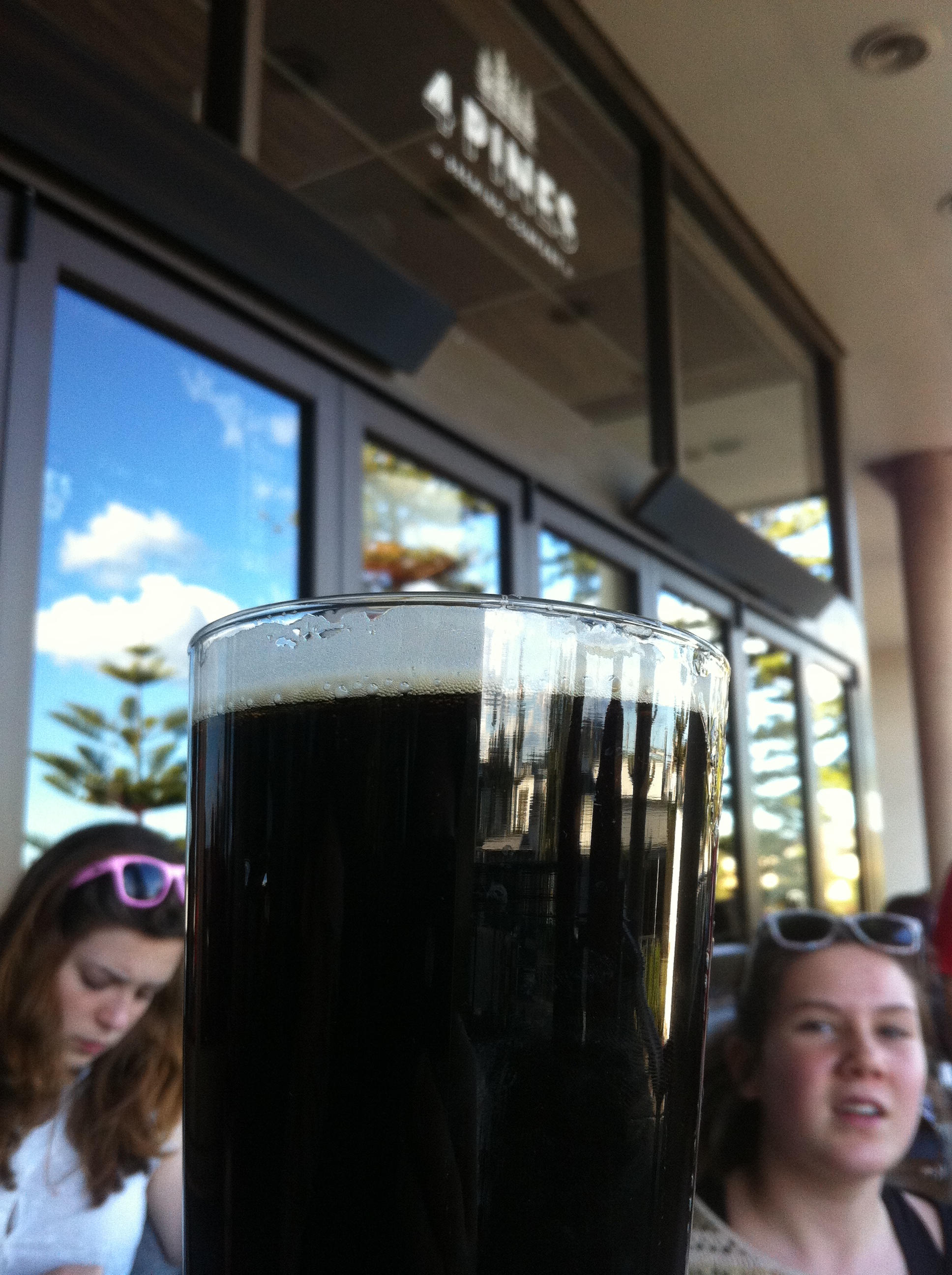 We could have stayed at Harts all arvo, but the kids were getting antsy, so it was back onto the ferry for the traditional Canada Day fare at 4 Pines – pancakes, bacon, maple syrup and the one-off Canadian Ale. This year, the brewer (who is apparently of Canadian heritage) has changed the recipe markedly. Whereas the 2010 and 2011 Canadian Ales was quite red in hue, this year’s version was as dark as a dark ale can get without being black. This was a fine winter ale and one with which I’d love to fill my growler. Described as “malty and sweet”, it isn’t cloying, but rather warming and rich. Unfortunately I’ll miss the annual 4th of July celebrations, but hopefully there’ll be plenty left of the 4 new varieties for weeks to come.