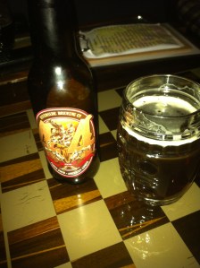 So to the Riverside Brewing Co. The first thing you notice about the Riverside Brews is the artwork on the labels (not normally my thing). Very cool. Spooning Goats offered 3 of the 6 varieties that Riverside has produced – the 69 Summer Ale, the 44 American Amber and the 88 Robust Porter. I was lucky enough to get a preview of the 69 Summer Ale – but I hadn’t had the other two. I’ve got to say that the 44 American Amber is one of the better beers I’ve had for awhile. The lads with me also loved it. Very sharp and very big. Great appearance as well with a very dark amber colour.