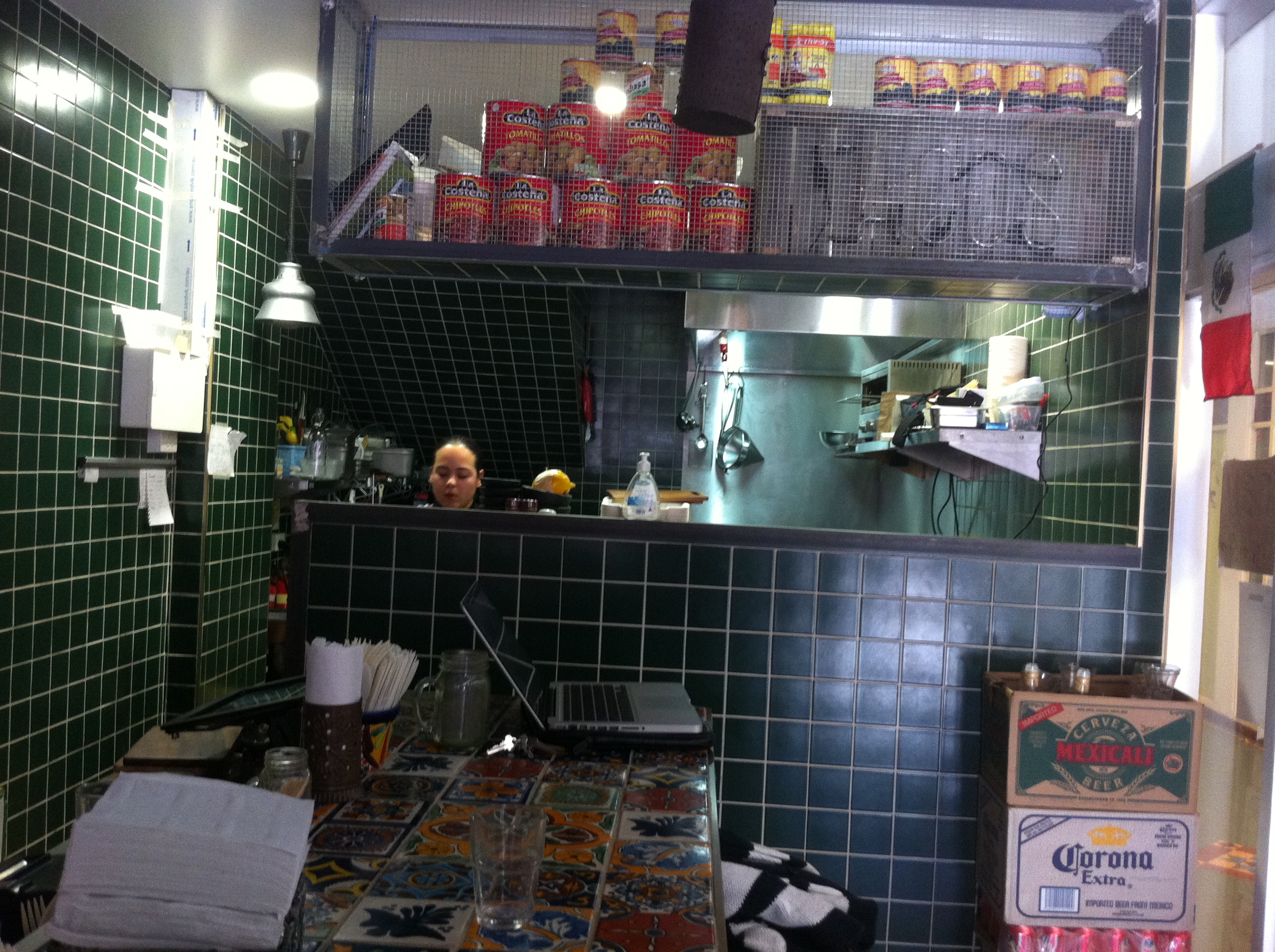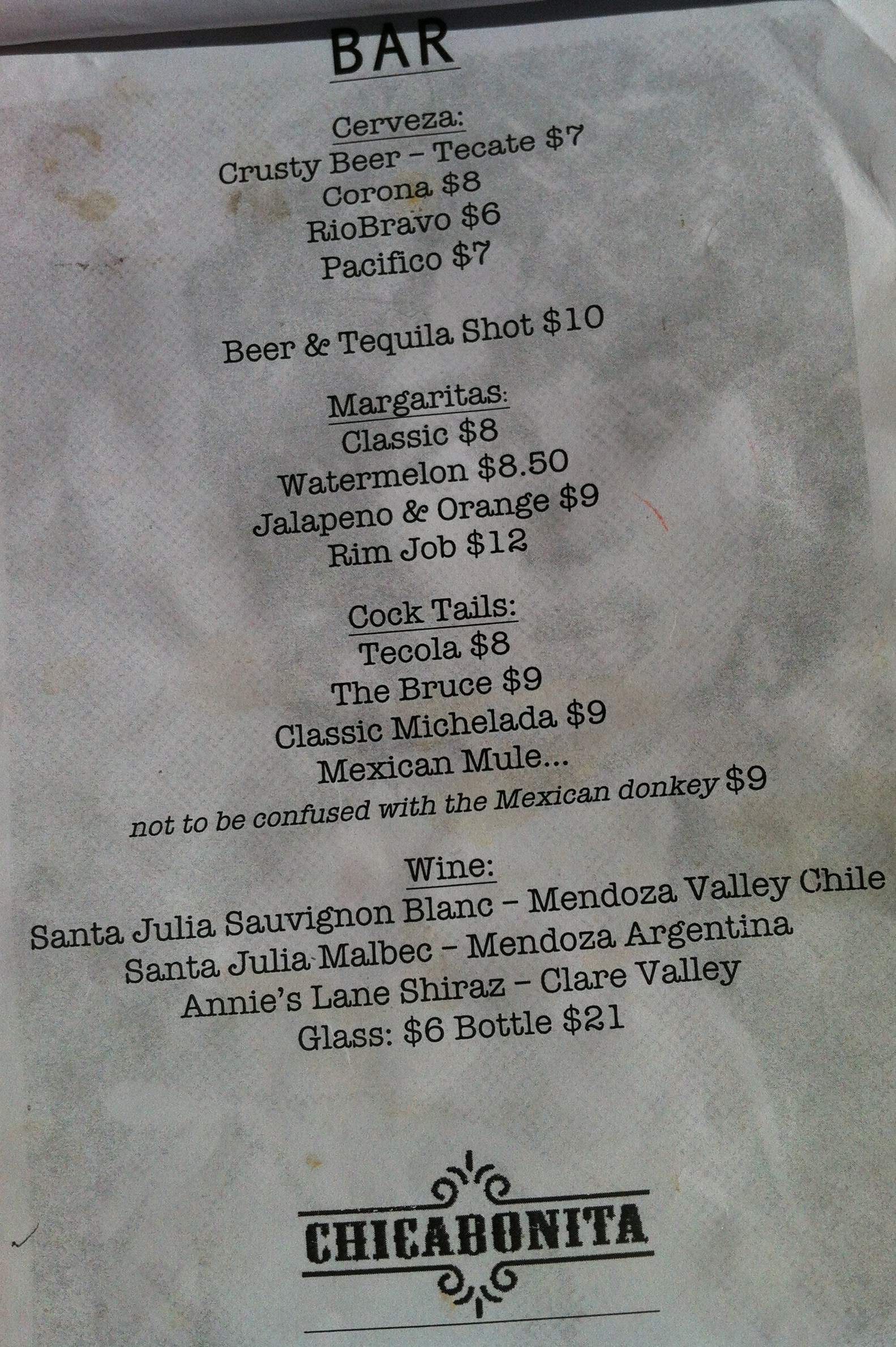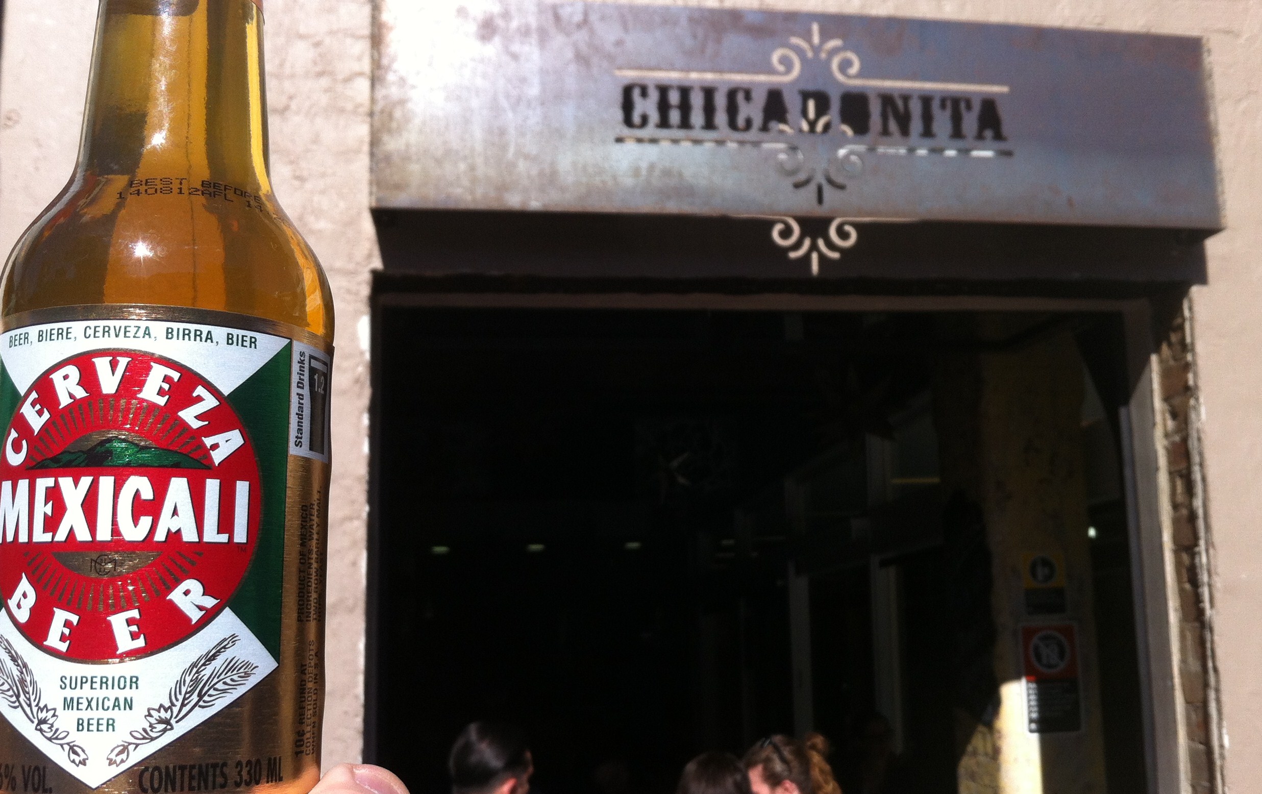 Chica Bonita (which may mean “pretty girl”) has been cleverly wedged into a narrow shop at the end of a small arcade that runs off the Corso. Despite its relatively hidden location, this Mexican bar and restaurant couldn’t pump its lunchtime burritos, beers and cocktails quick enough on a Saturday afternoon. Like most small bars/cafes/restaurants plenty of effort has been put into the furniture and wall art – and some may regard the fit out as kitsch, I reckon they’ve nailed it. Memories of a wonderful afternoon at an Ensenada bar called La Palapaloca came flooding back and a quick persual of the photos of that visit confirm, that Chica Bonita really provides a genuine Baja experience. The display bowl of beers in limes is a classic example.