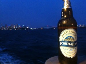 We weren’t able to get any @Untappd uniques, but we were able to celebrate the induction with a couple of ripper beers. The Sierra Nevada Kellerweis has been reviewed before – but gees it’s a great Hefeweizen. We followed it up with a brilliant pilsner that has also made these pages before – Schiehallion. Again the twilight and the stormy skies made for great beerporn.