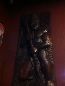 Inside, there’s an eclectic collection of paintings and adverstising. Kiwi beers represent about 50% of the taps with Tui East India Pale Ale and two varieties of Monteiths alongside the ubiquitous Cartlon Draught andother macros. Some of the advertising is Monteith inspired, but there’s also retro Carlton stuff as well. It is the artwork however that is the most fascinating. There’s a collection of Gauginesque paintings of semi-clad women, that border on tacky. It’s the collection of Maori Chiefs that really standout. There’s a wood reliefs, ink drawings and a remarkable print of the most regal Maori Chief of all. It all makes for a wonderful environment to sink a couple or three.