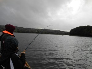 moved around Butcombe bay to get out of the wind, closer to the bank, a gold head black buzzer got my flies to the right depth and was to the trouts liking. All of a sudden we started catching fish fairly regularly, all up we caught 14 between us (3 for me, my son had 4 and brother had 7). All the fish were between 2-3lb in weight. We kept a dozen fish which have all been given away to