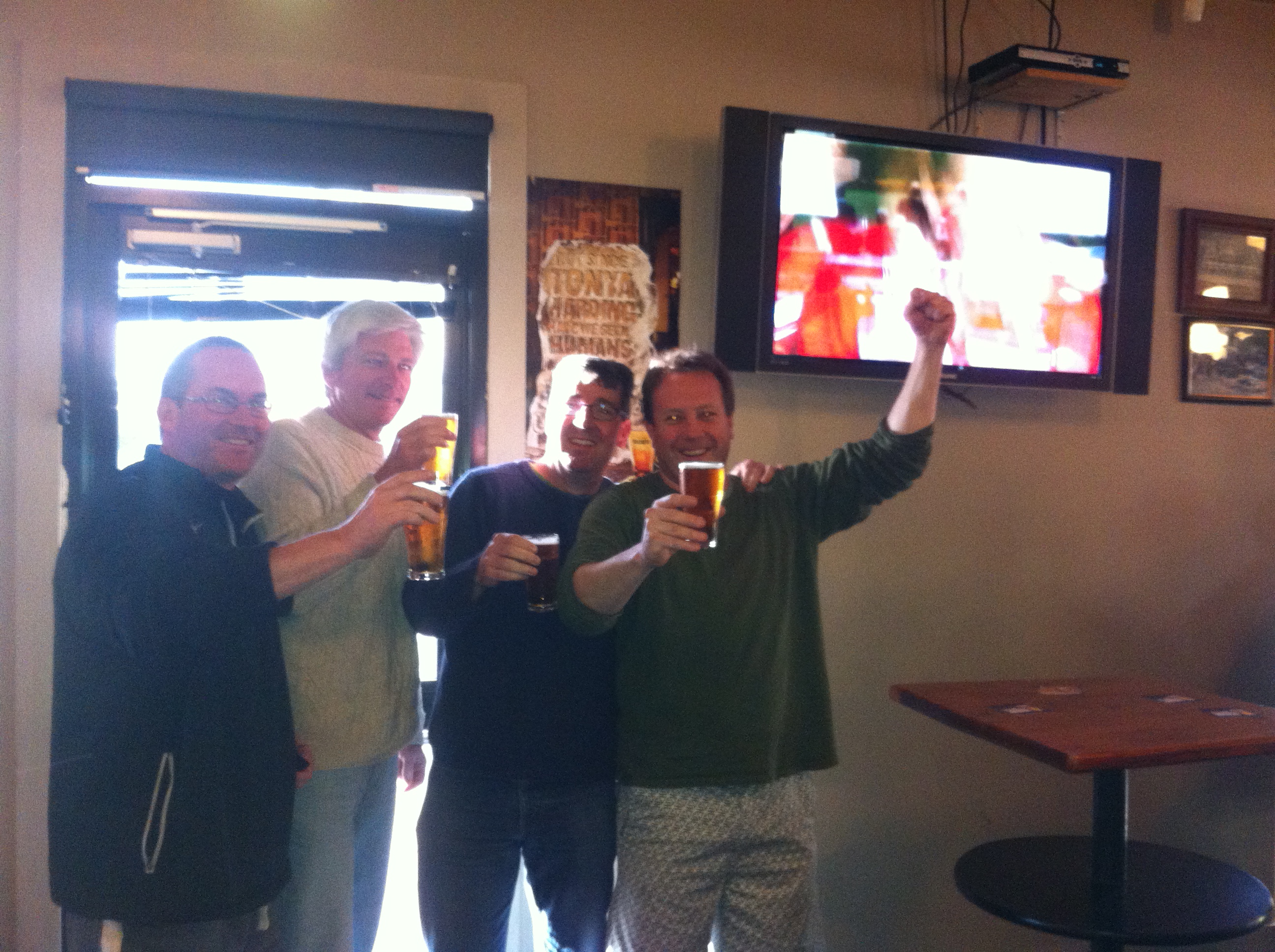 A wonderful thing about farm weekends is that the fresh air definitely puts an edge on one’s thirst – and fortunately this year one of the lads brought up a keg (no less)of home brew named Cockburn British Bitter. Beautiful ruby brown and an even better taste – very smooth, eminently drinkable and a nice hoppy finish. The boys got well and truly stuck in and celebrated the Swannies win in style.